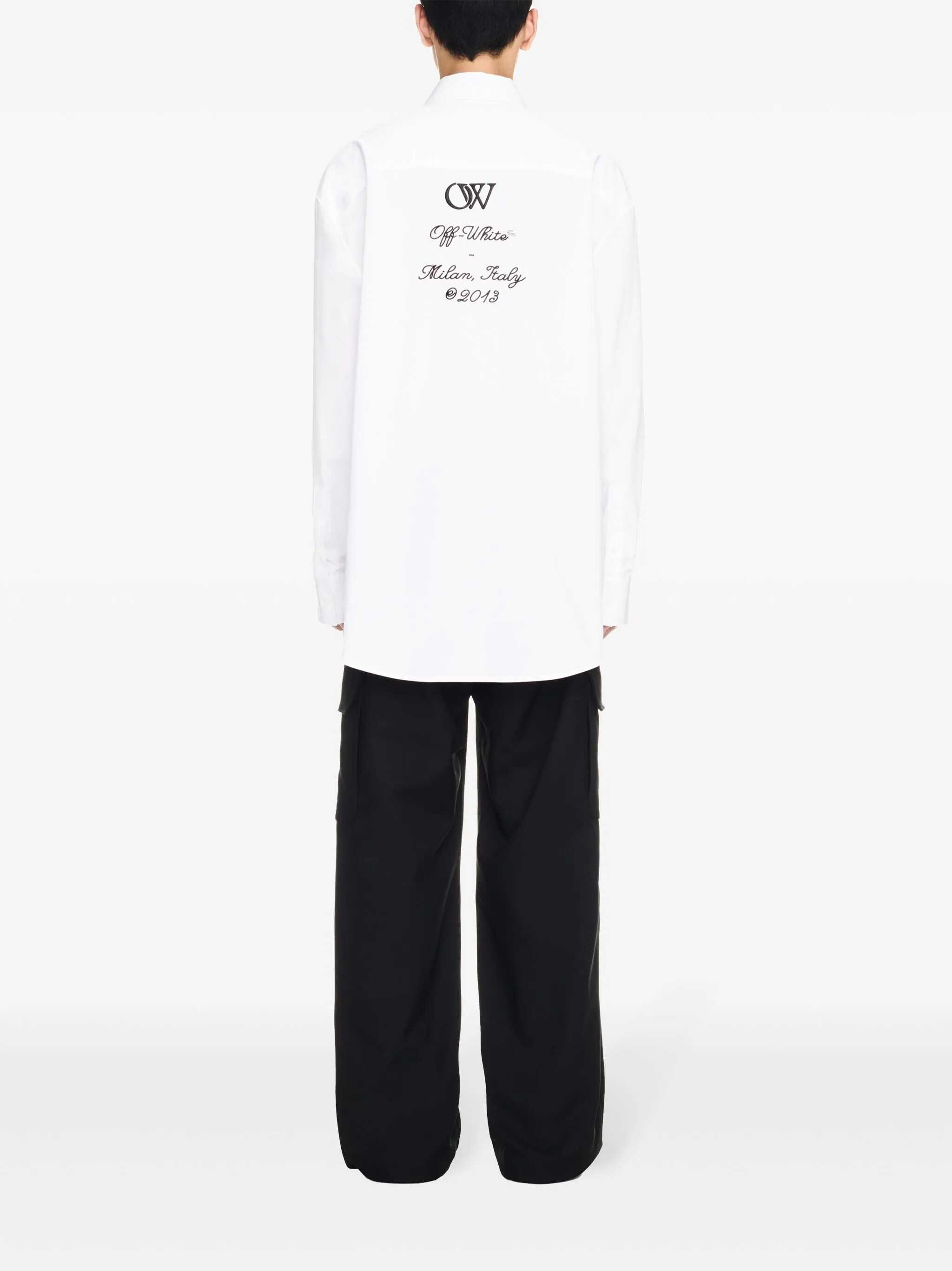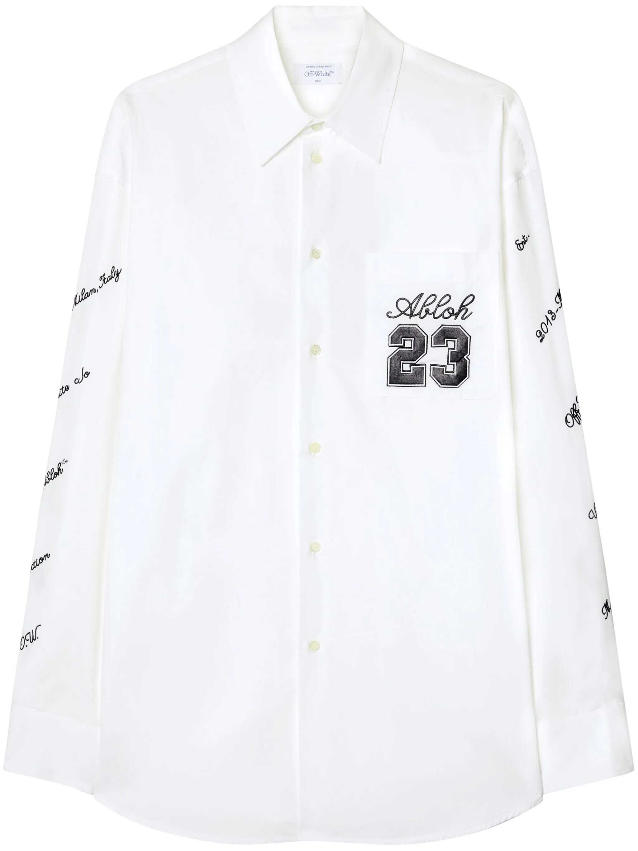 white/black cotton embroidered logo number patch to the front straight-point collar front button fastening long sleeves curved hem