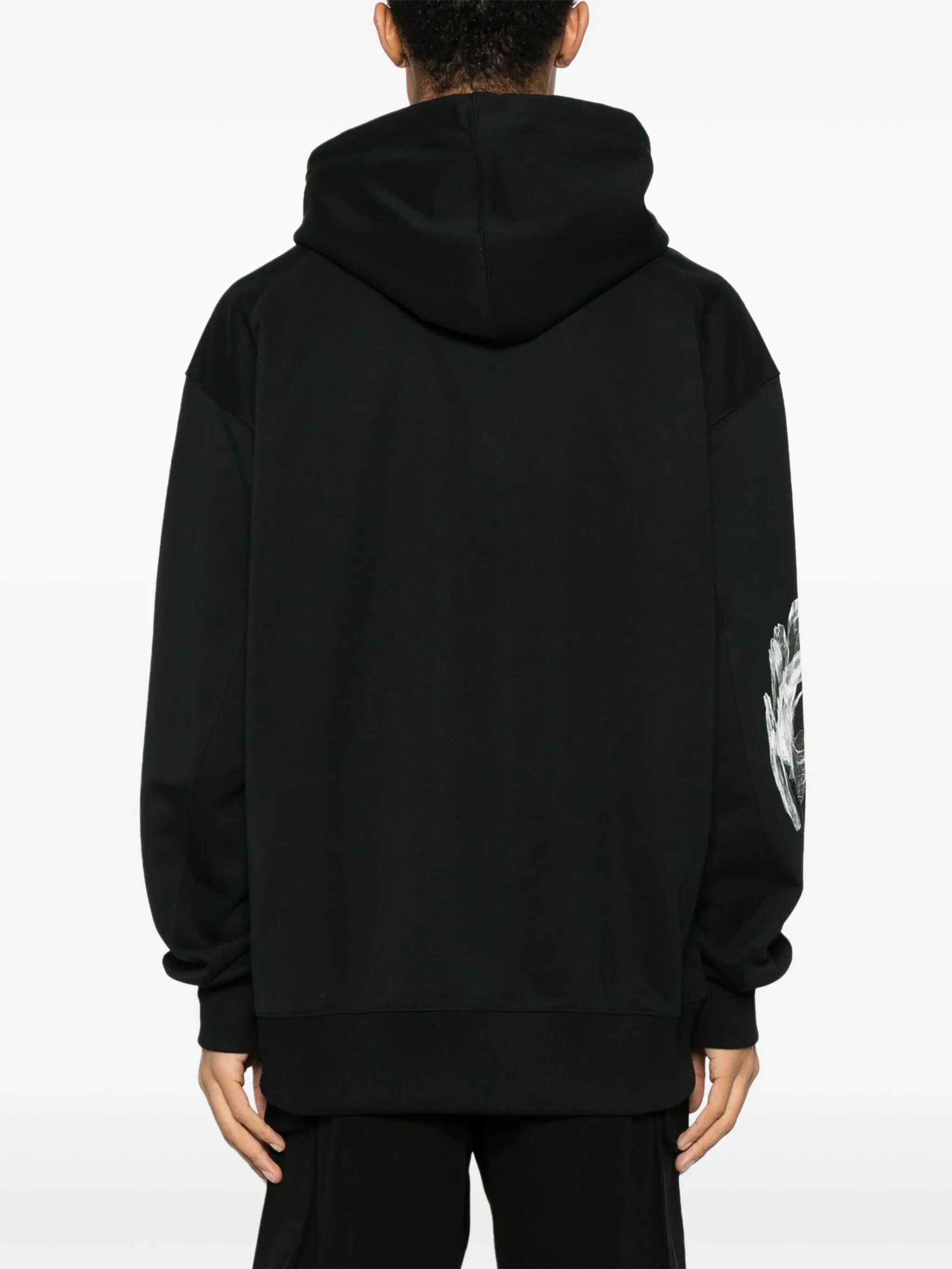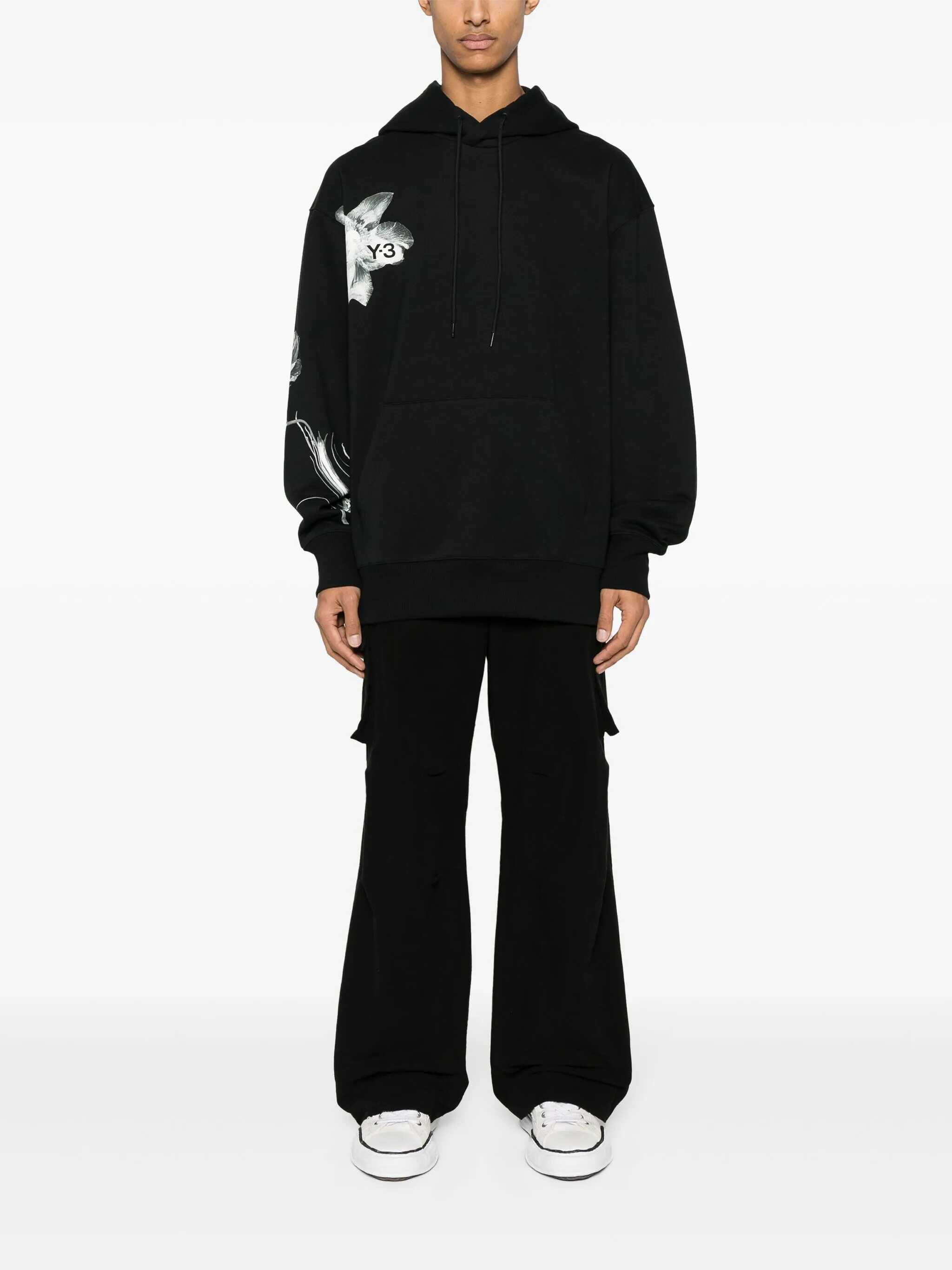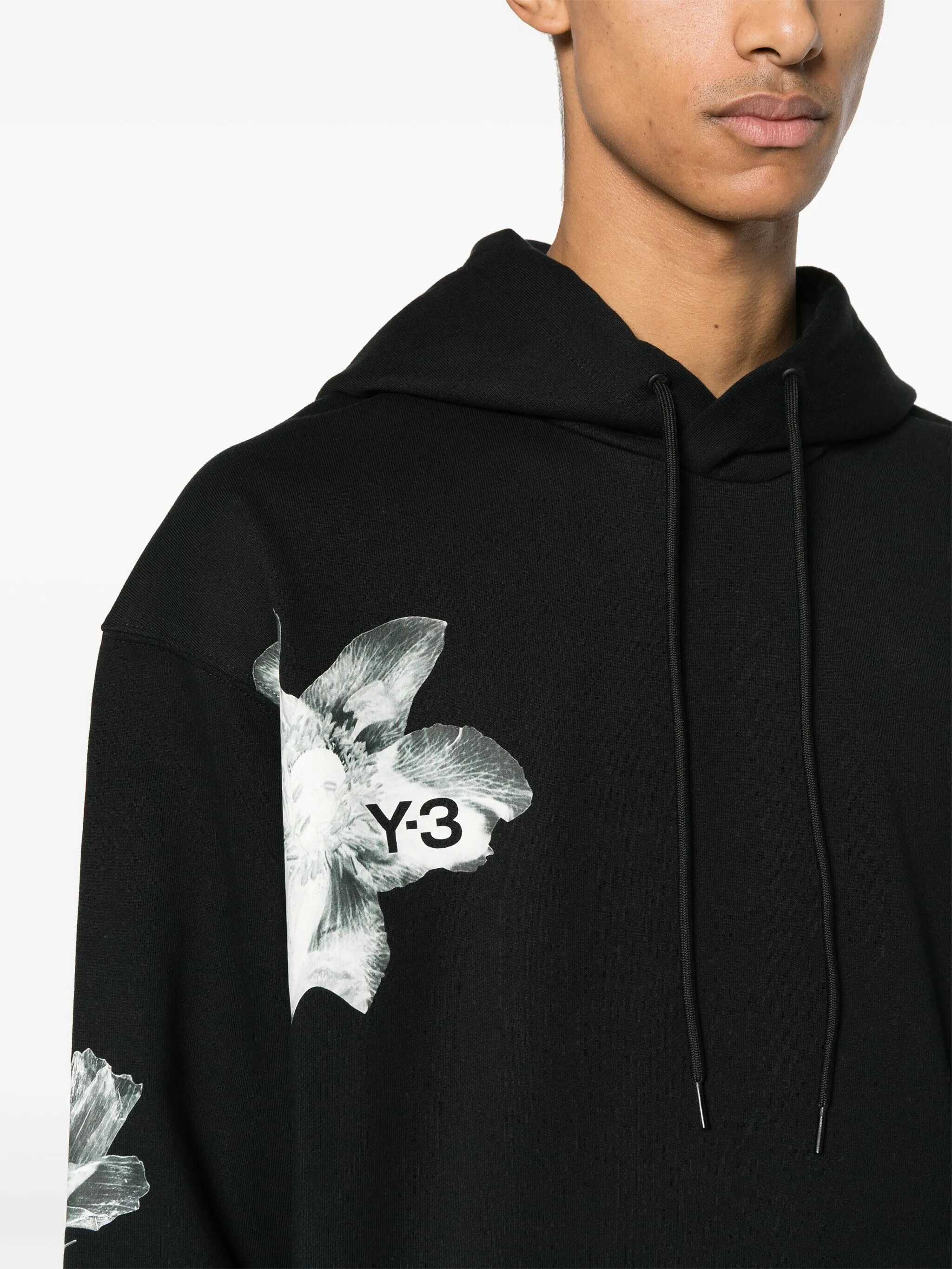 Sweatshirt Y-3 made of Black cotton. Hood with drawstring. Long sleeves. "Flower" print on the front and on the sleeve, "Y-3" logo. Pocket a fanny pack. Ribbed cuffs and bottom. Regular fit.