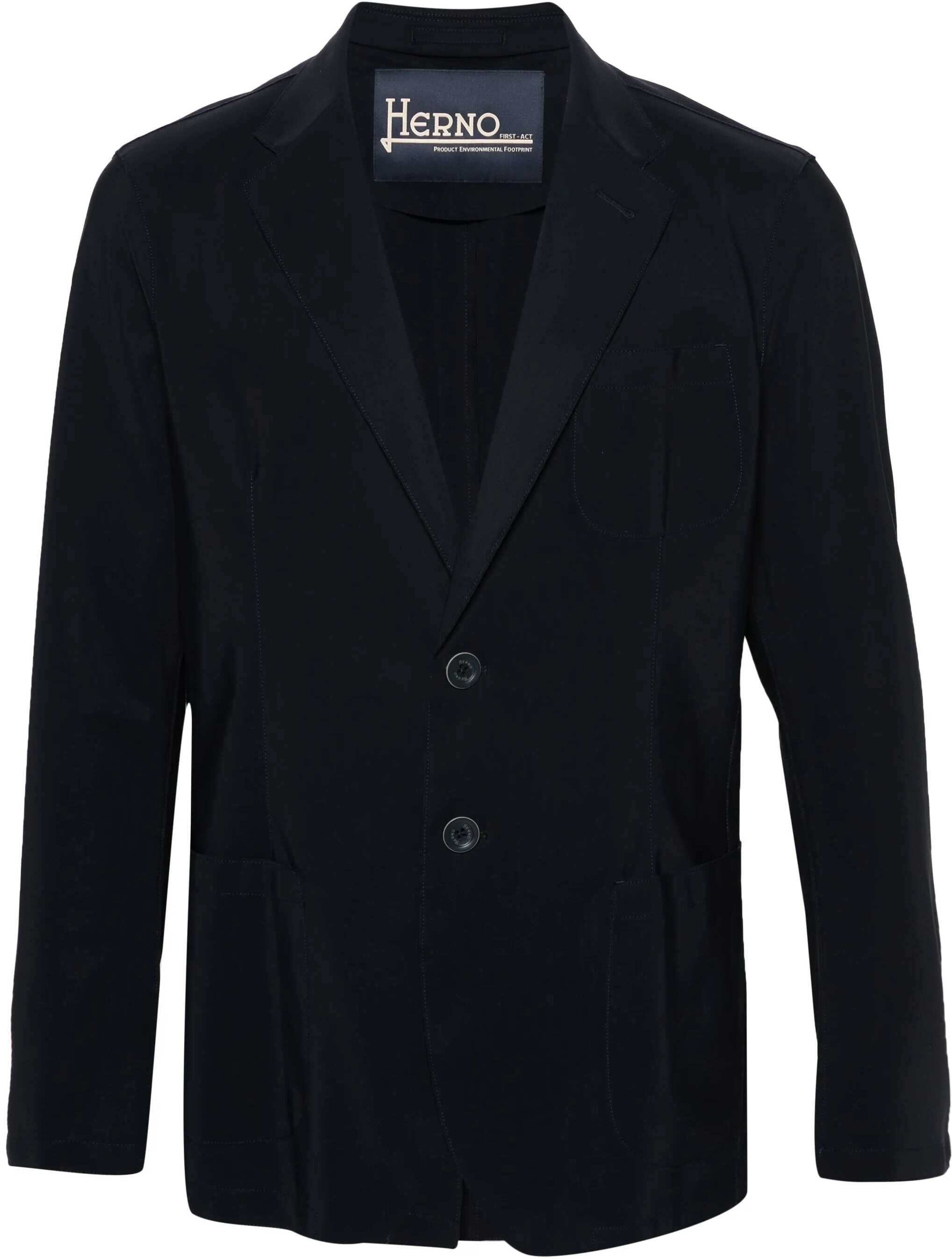 Blazer Jacket by Herno, double-breasted front button closure, classic lapels, two welt patch pockets, one front welt patch pocket, back vent, monochrome pattern, regular fit.