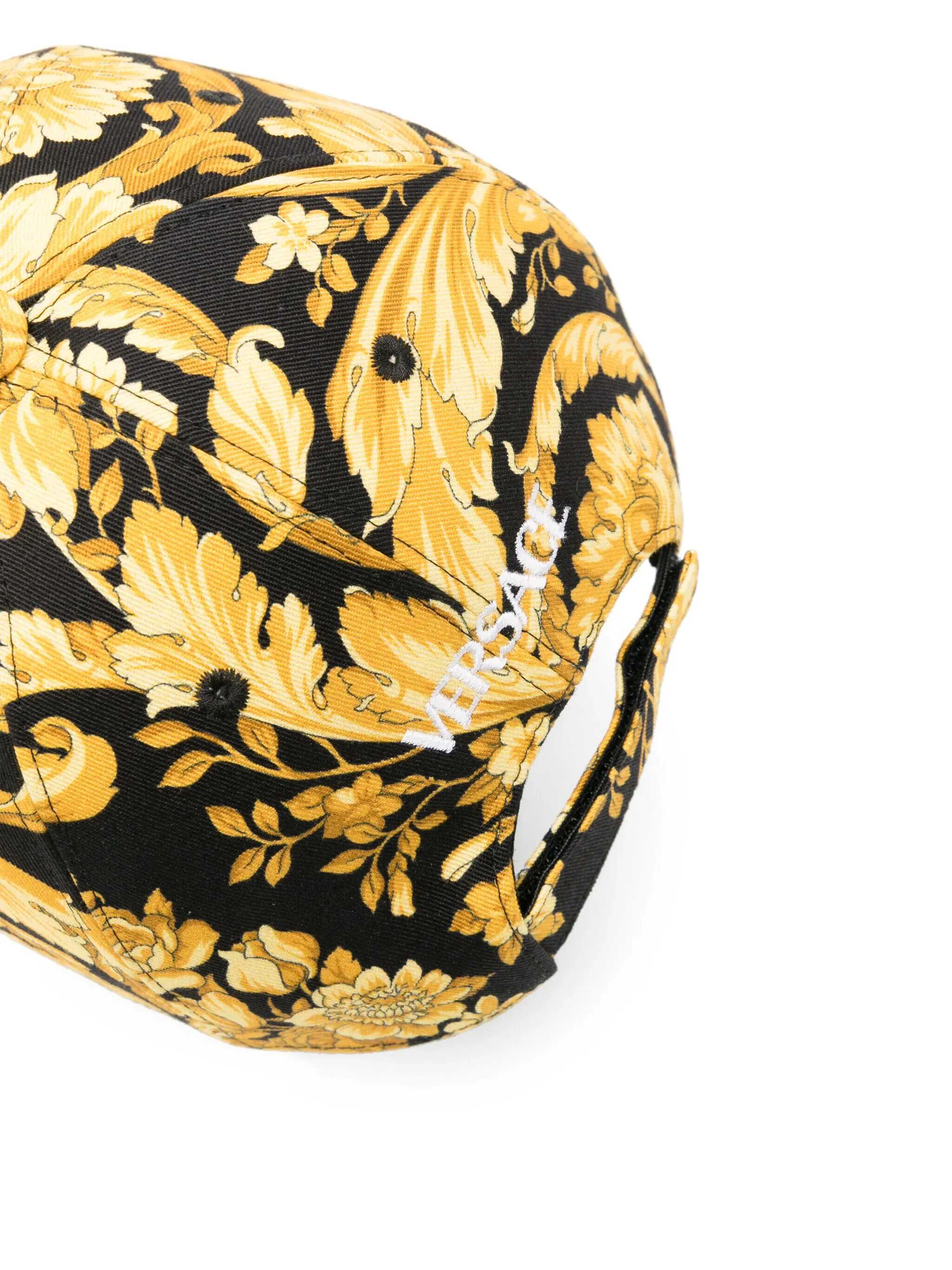 Cenere GB selected this item based on its high stylistic content and eco-sustainability. Versace Embroidered Baseball Cap Origin: Italy Features gold/white/black cotton Barocco print feature logo embroidery on the front logo embroidered on the back six-panel structure curved brim fabric-covered button on the crown velcro closure on the back full lining