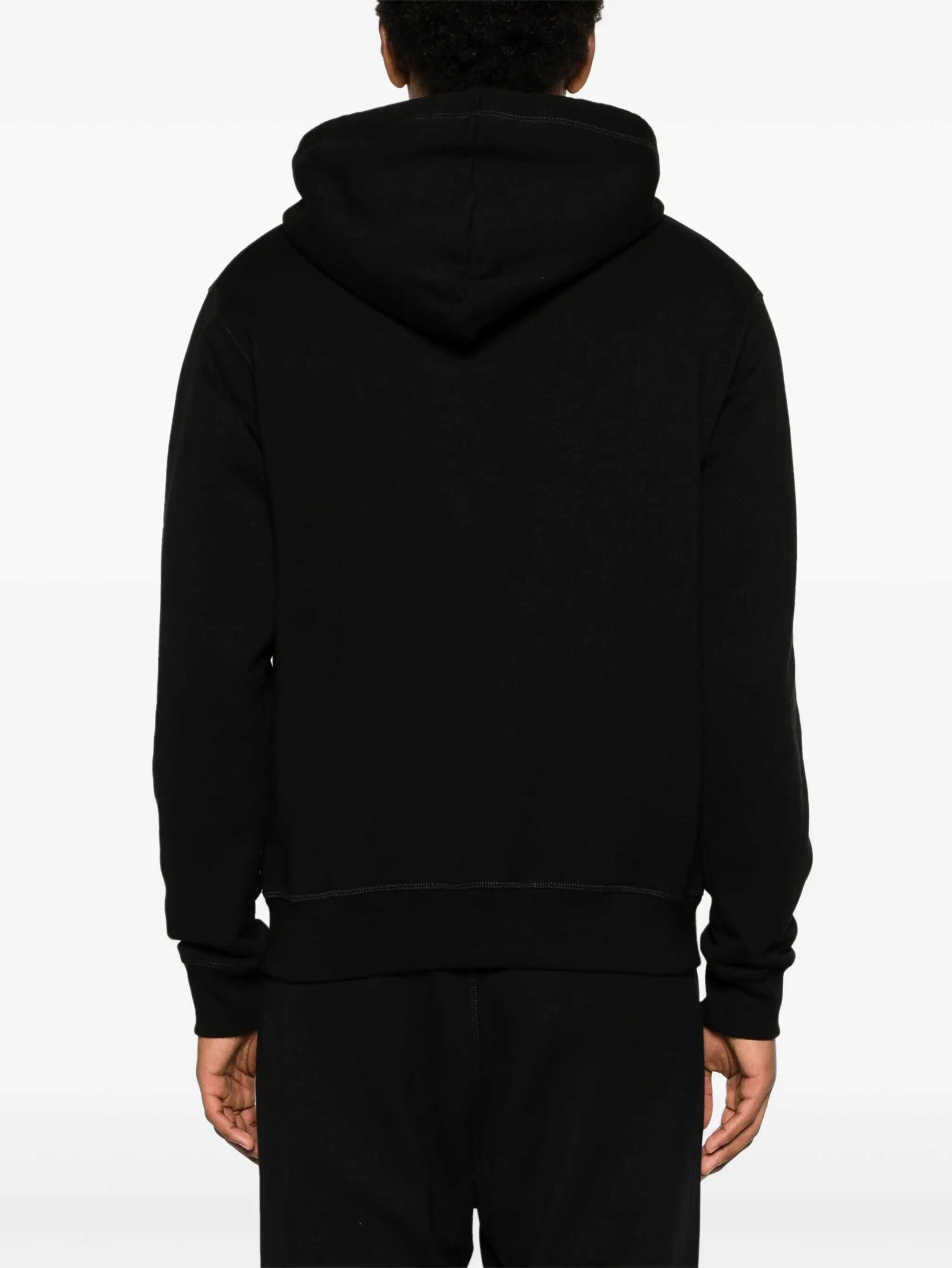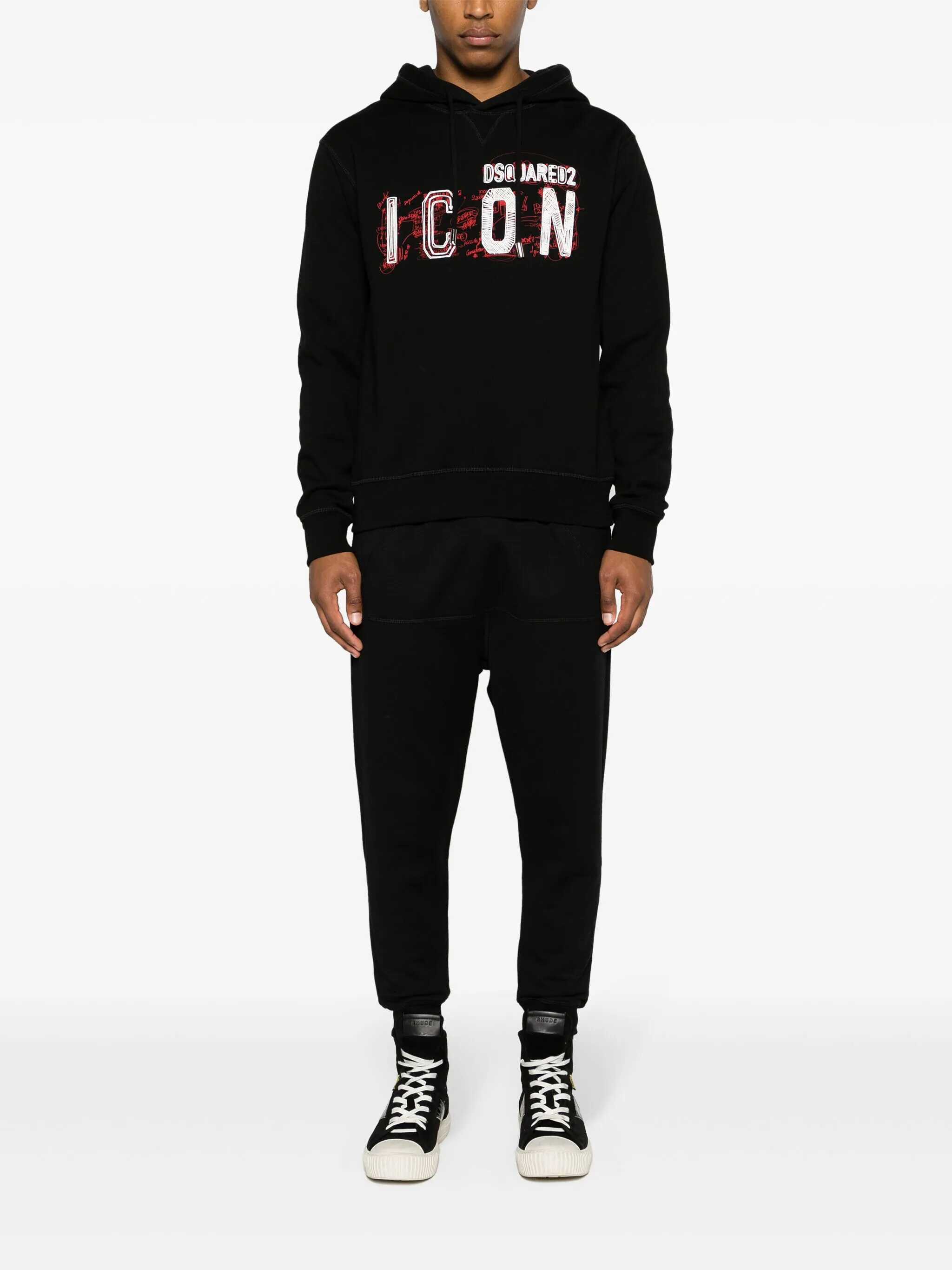 Hoodie sweatshirt Dsquared2 made of Black cotton. "Dsquared2 Icon" logo lettering in contrasting White. "Scribble" effect in contrasting Red. Hood with drawstring. Long sleeves. Ribbed cuffs and bottom.