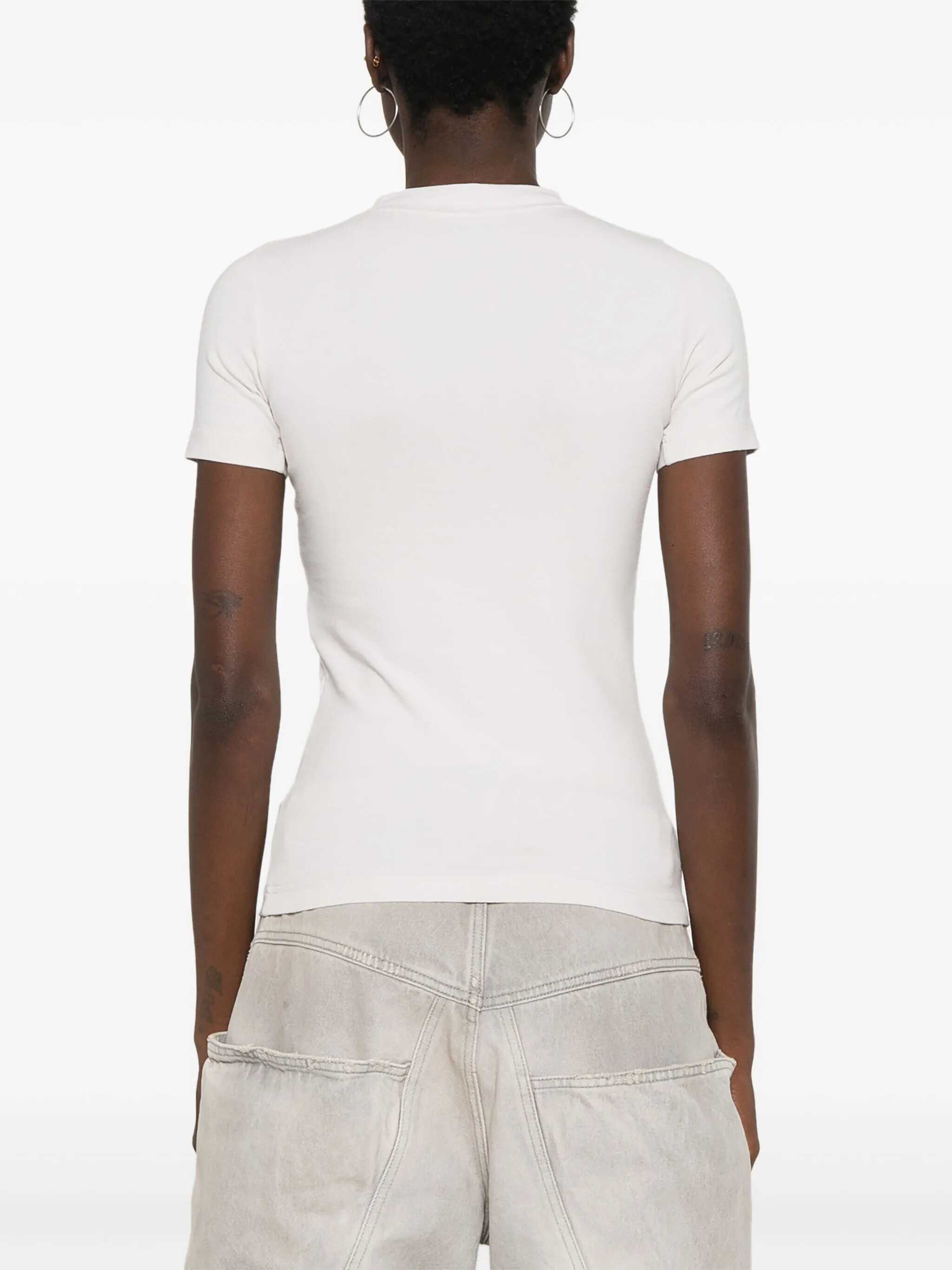 off-white cotton blend stretch-jersey ribbed crew neck short sleeves embroidered logo at the chest straight hem