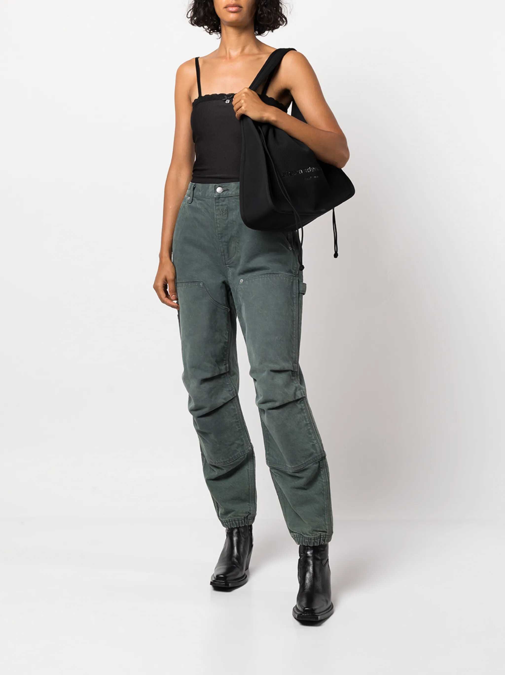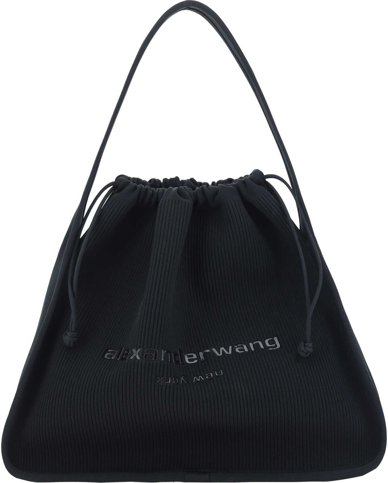 The Ryan large Handbag by Alexander Wang is an accessory with an urban, modern style. Made of ribbed fabric, it features a drawstring top closure and single flat handle for easy carrying. The brand's iconic tone-on-tone signature on the front adds an understated yet recognizable touch, making this bag perfect for a contemporary and versatile look.