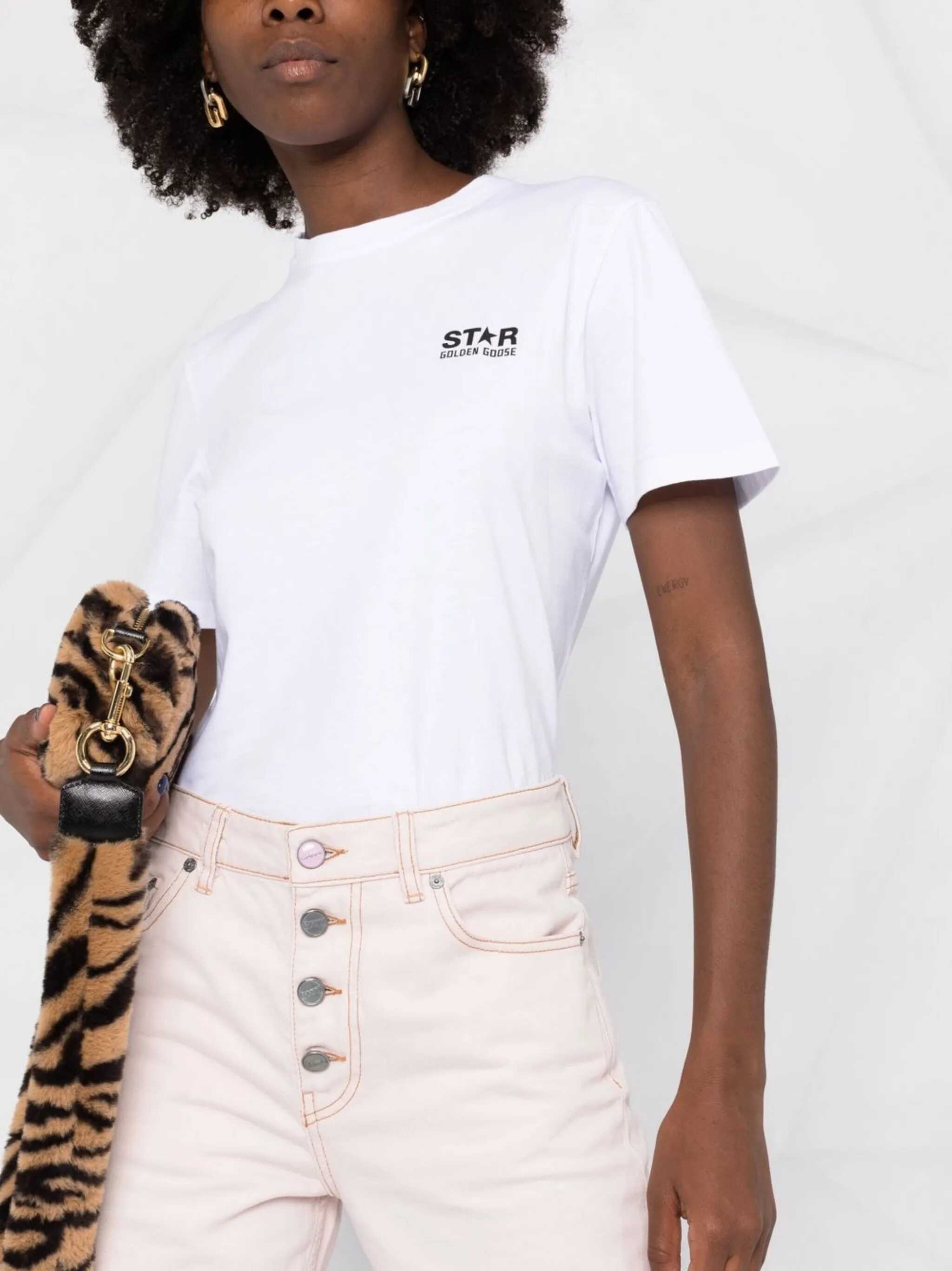 T-shirt Golden Goose "Star" made of White cotton. Ribbed crew neck. Short sleeves. Contrasting Black "Star" logo print on the chest.