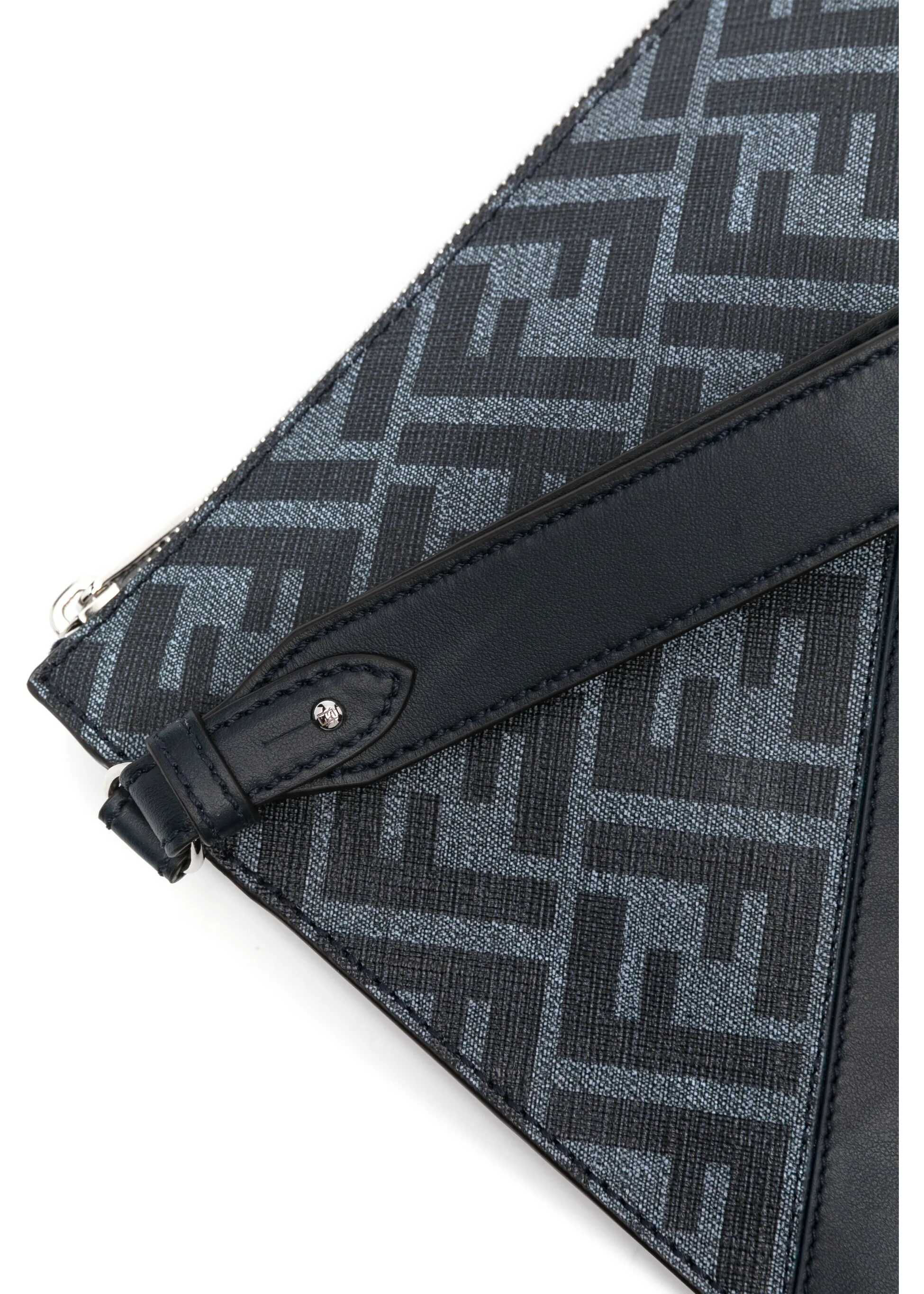 The Fendi Pouch is an elegant and functional accessory, crafted from leather with jacquard coated fabric details that display the iconic repeating FF motif, a hallmark of the brand. Equipped with a leather puller to carry it comfortably on the wrist, this clutch is designed to be both practical and stylish. It features a slanted zip pocket on the front and a top zip closure, for greater security and ease of use. Perfect for those seeking a touch of everyday luxury with a recognizable and sophisticated design.