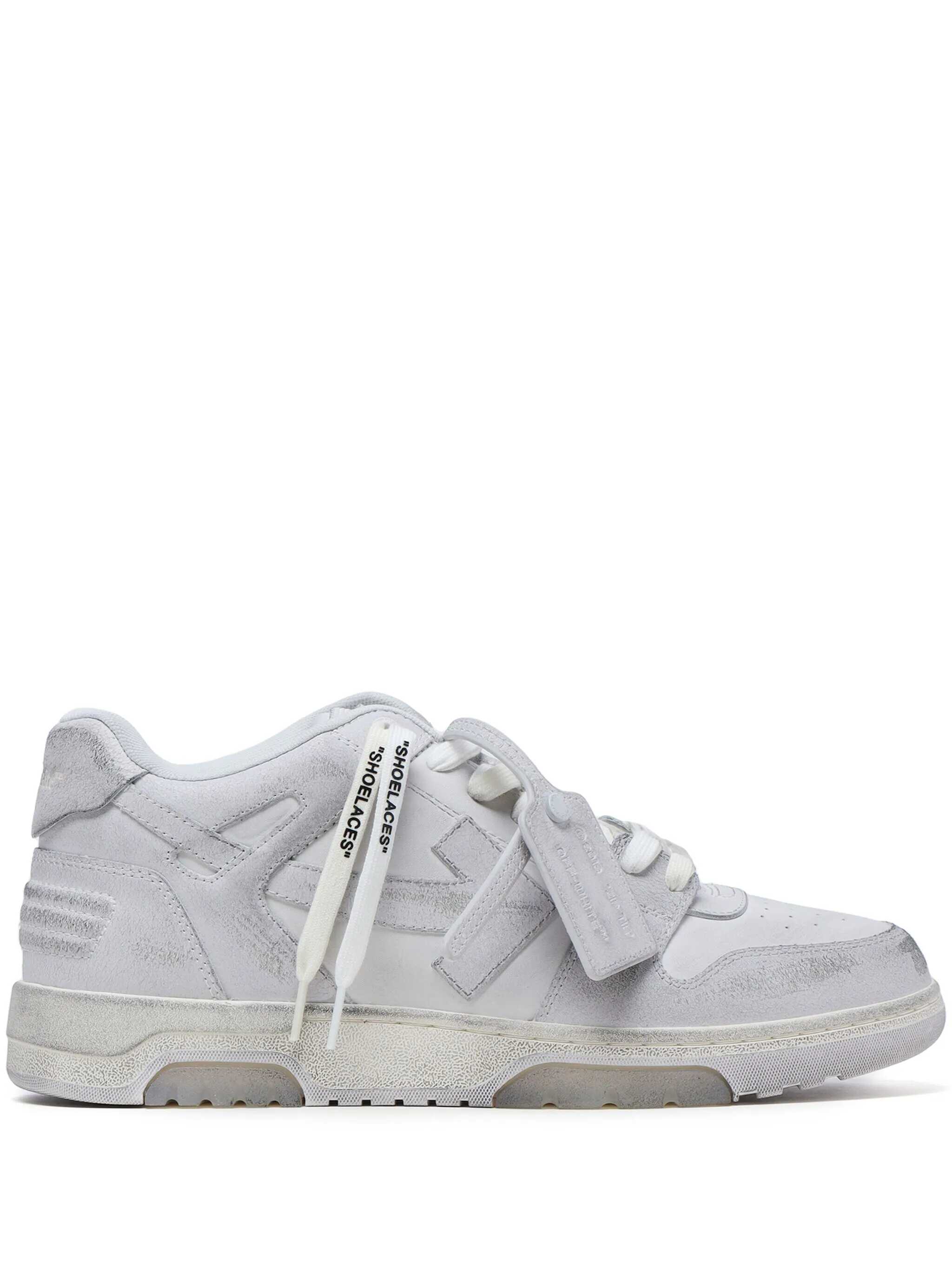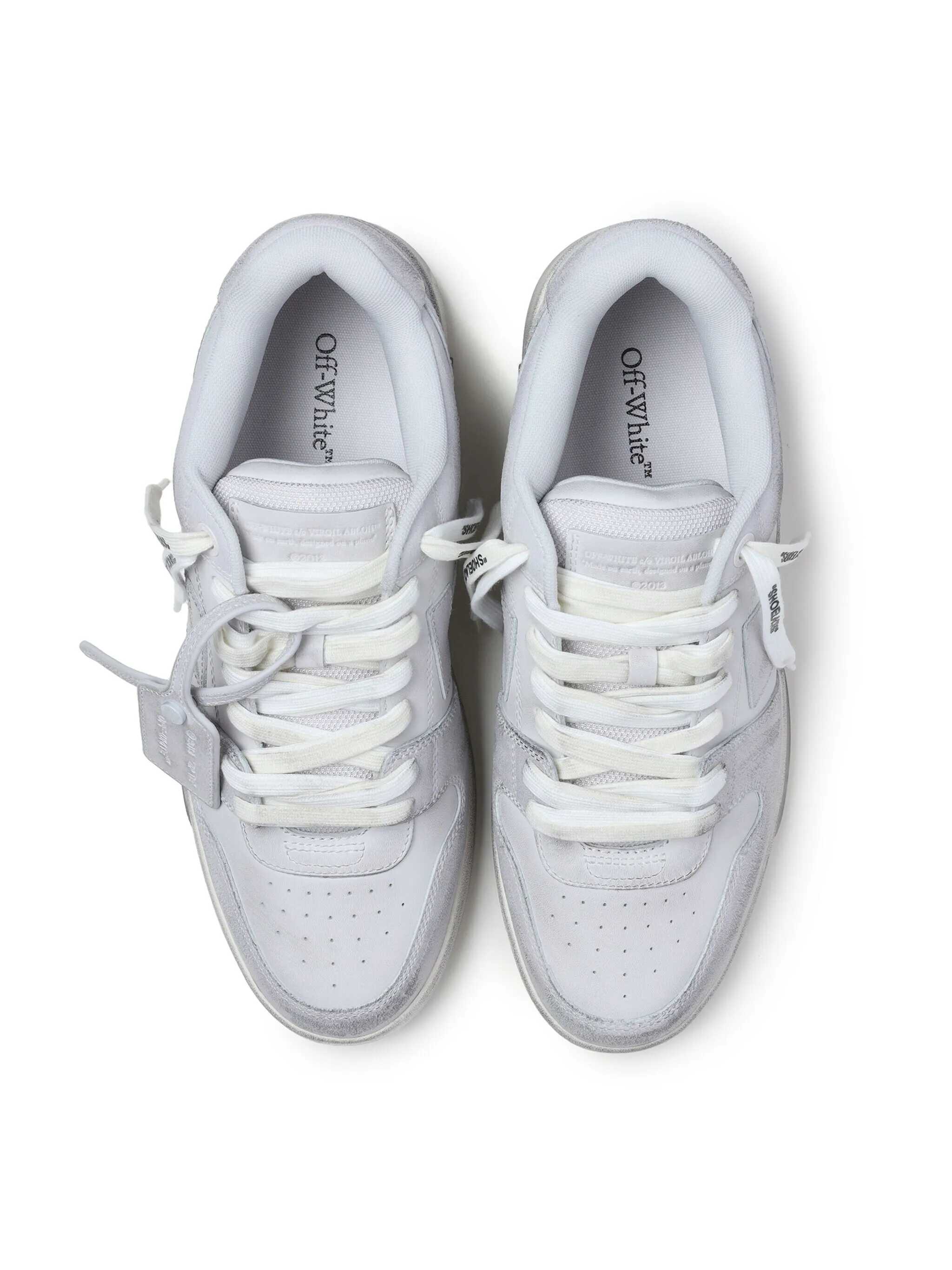 ash grey/white calf leather panelled design suede panels round toe perforated toebox logo patch at the tongue signature Zip Tie tag signature Arrows motif branded heel counter padded ankle branded insole rubber sole front lace-up fastening