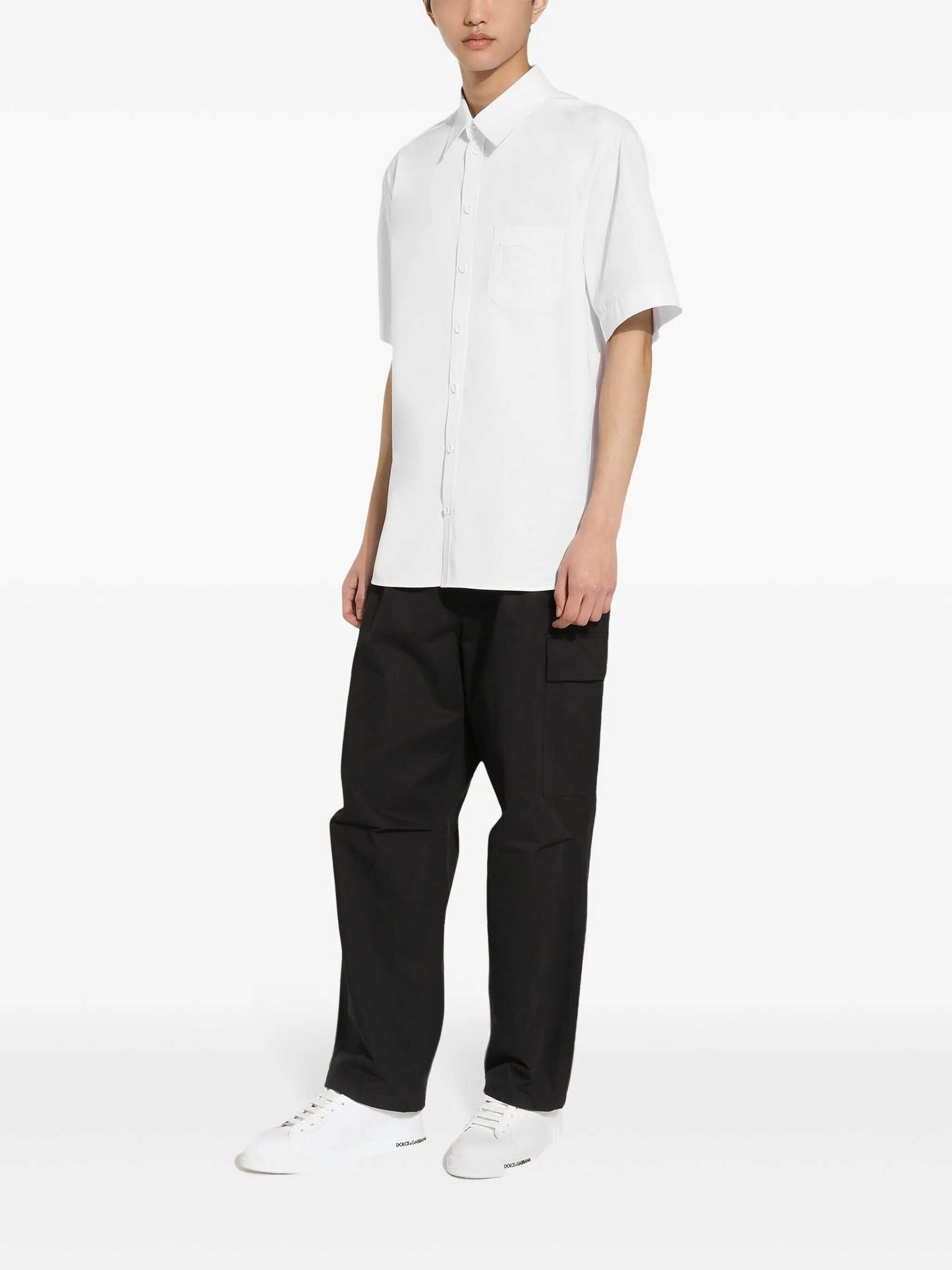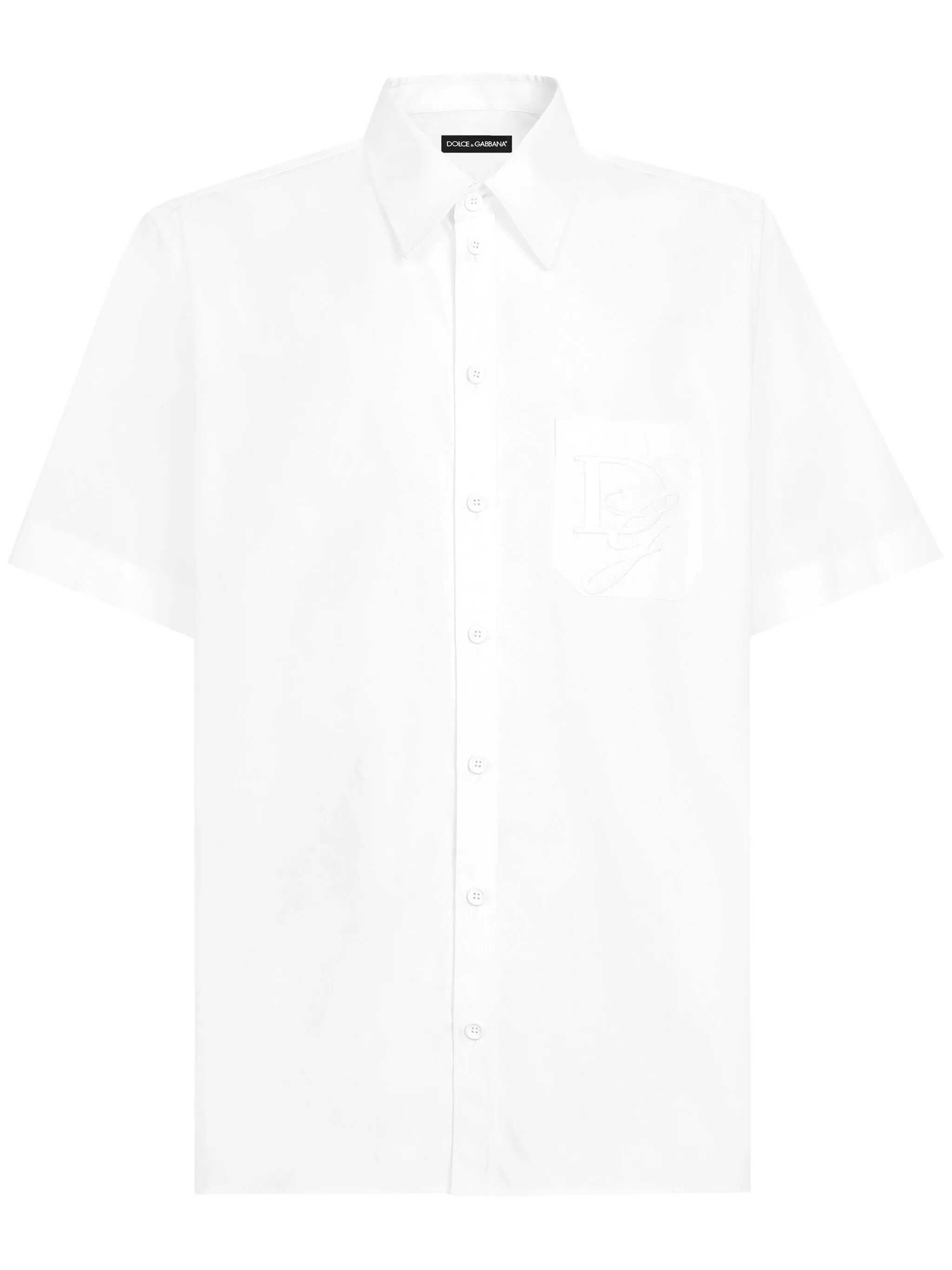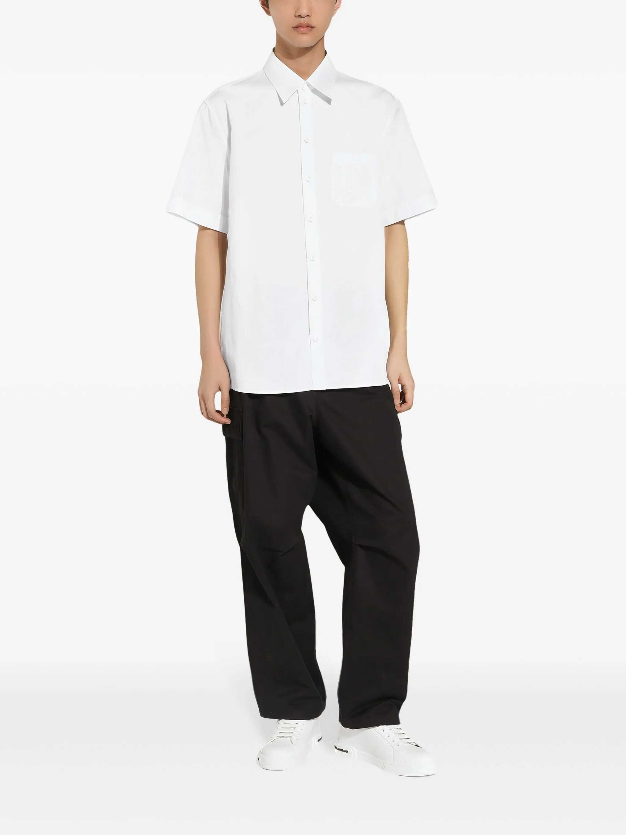 Cotton shirt, front pocket with embroidered logo, button closure, and short sleeves