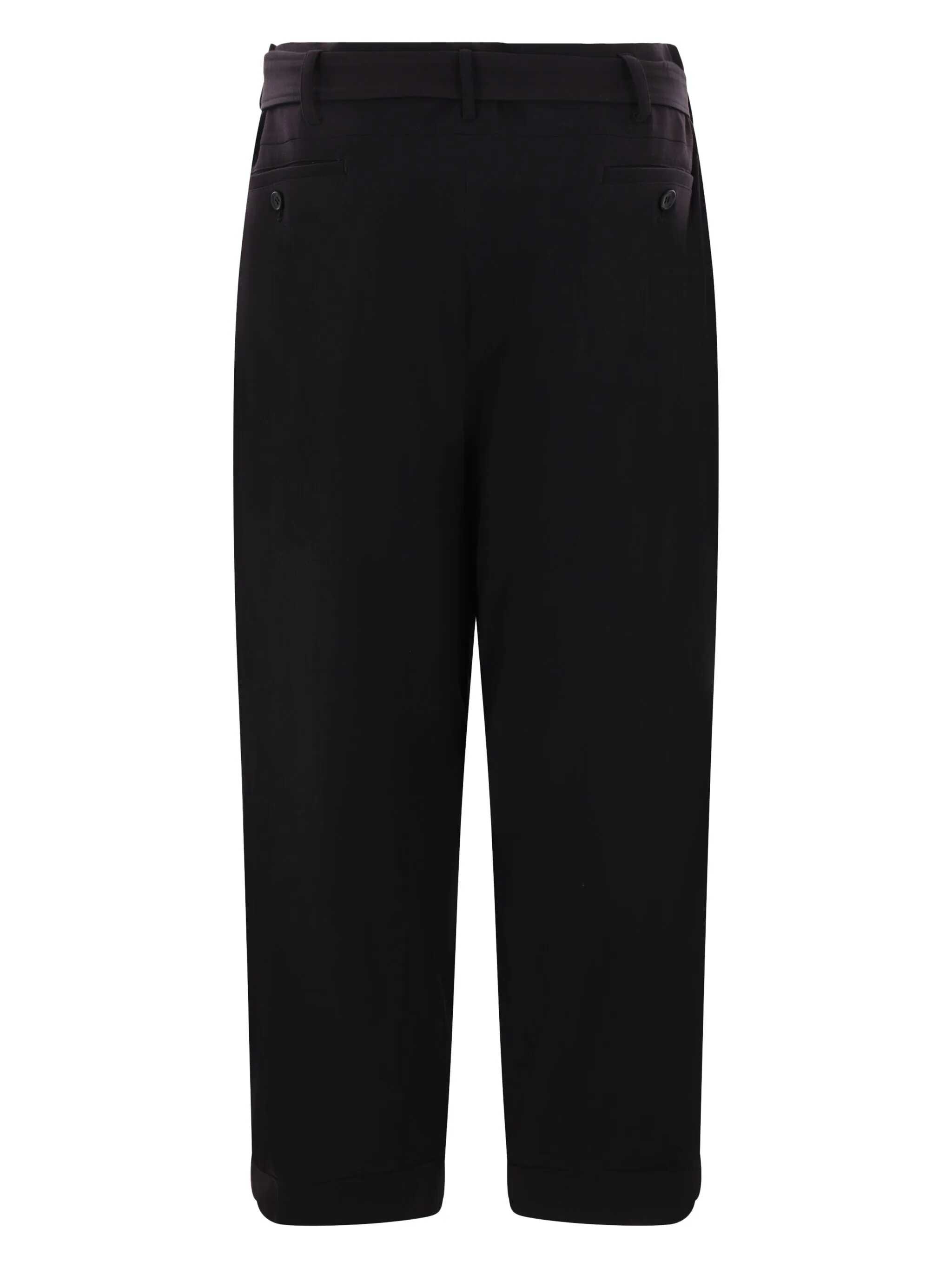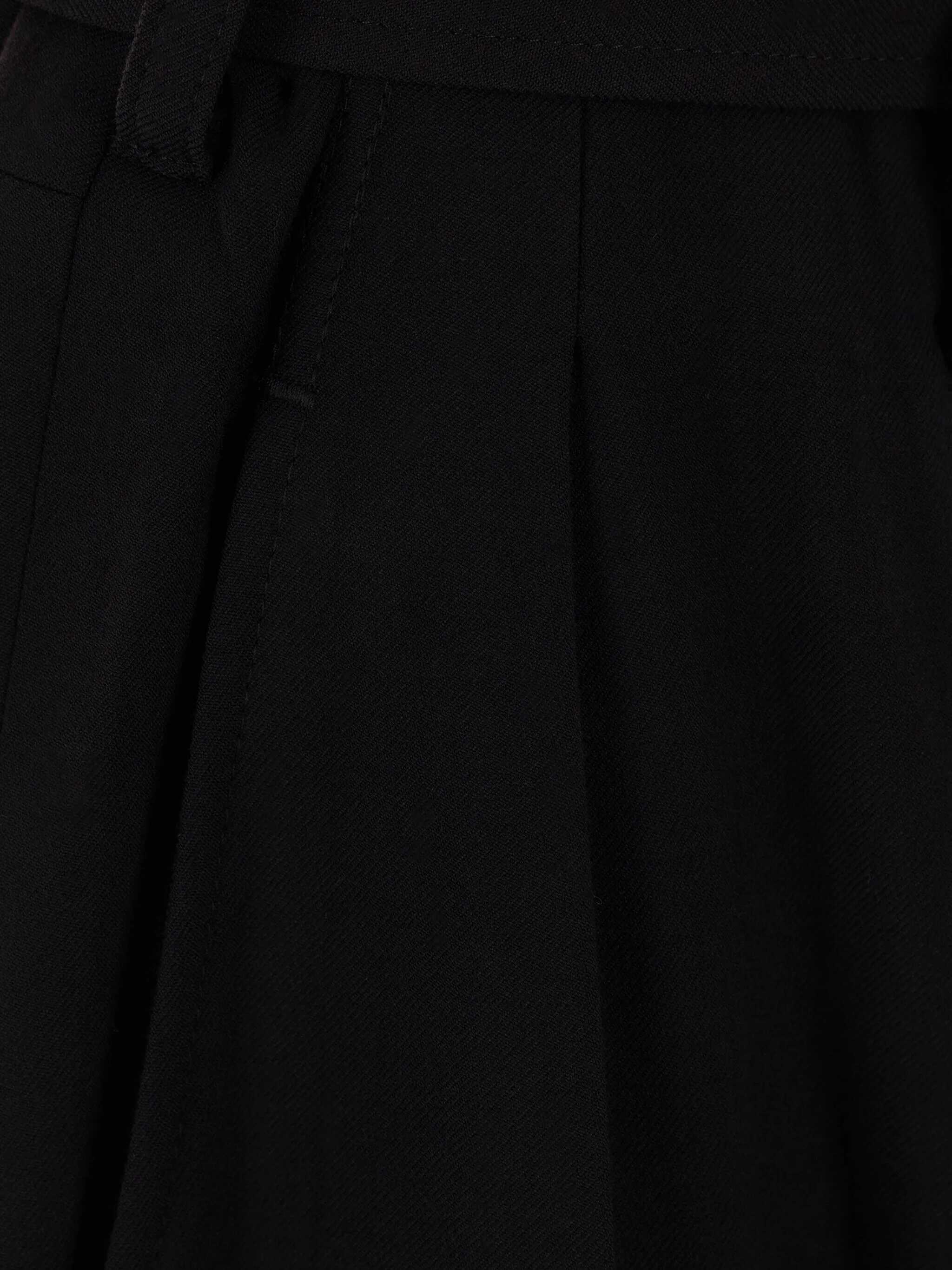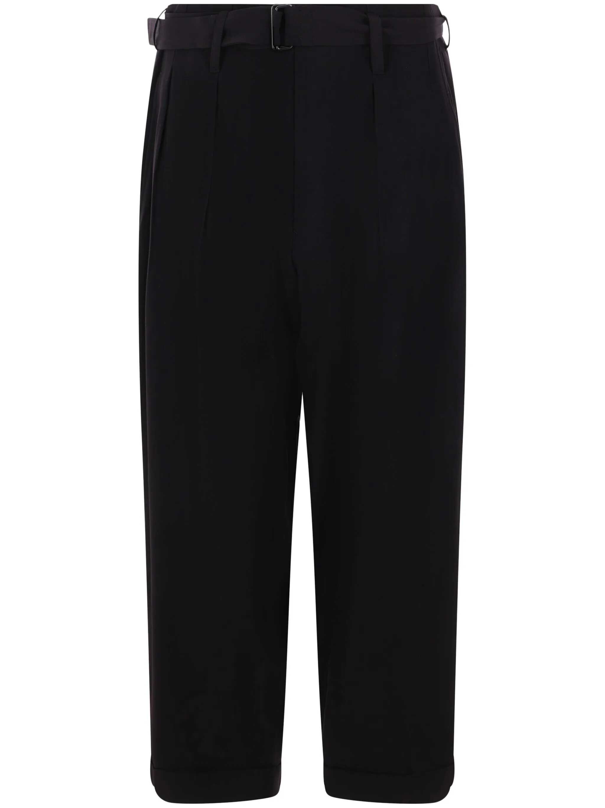 Pants with pleats by Yohji Yamamoto made of black wool gabardine. Features a button/zip closure, matching belt and pockets on both sides.