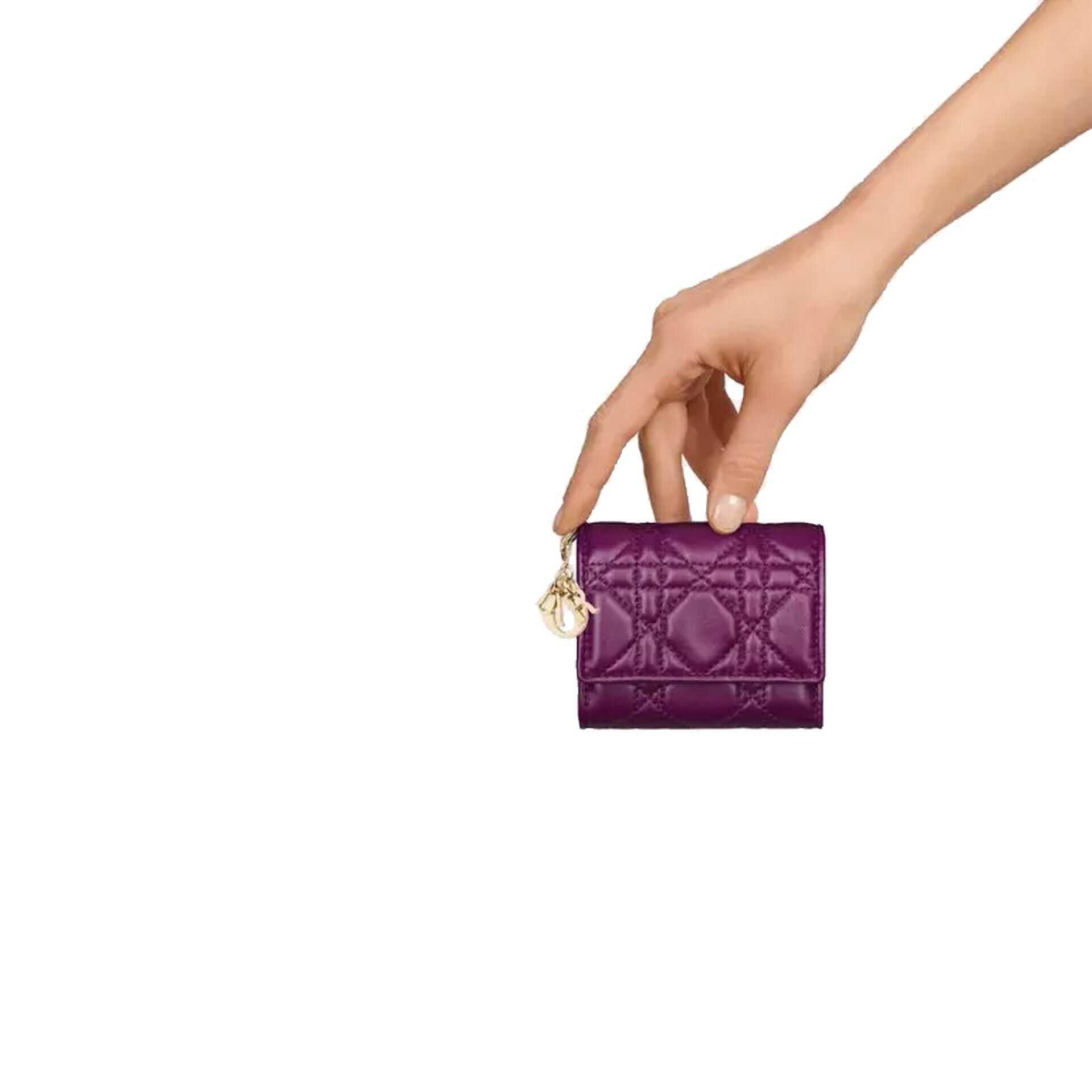 - Composition: 100% Lamb Leather - Snap button closure - Four card slots - Cannage stitching - Banknote slot - Coin pocket with snap button closure - Detachable D.I.O.R. charm - This item will be provided with its original dust bag. Box not included. - Made in Italy - Gender: WOMEN - MPN PURPLE - Barcode: 9990002786803 - Code: ACC CD 2 WA FW24 12277