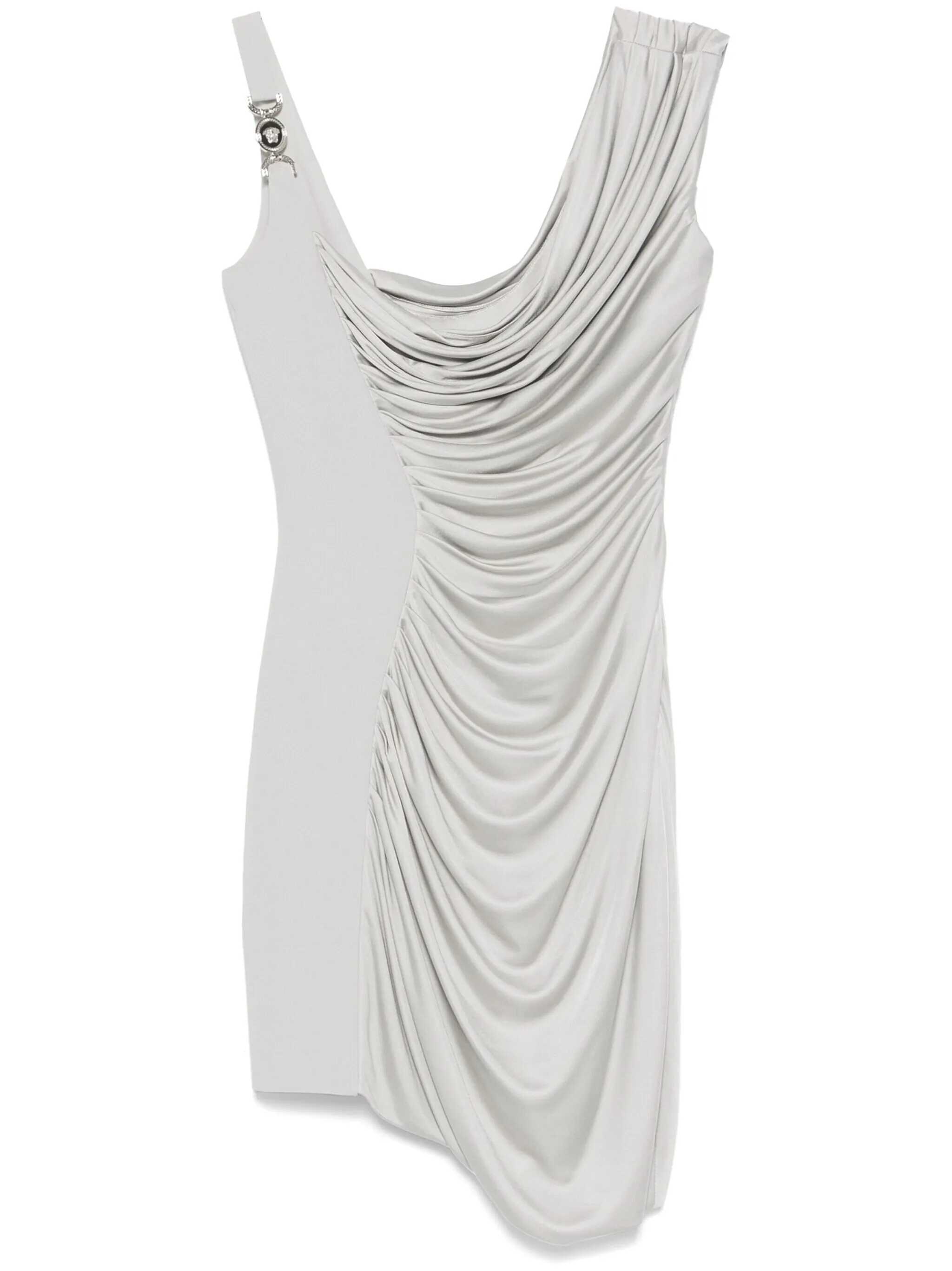 One draped shoulder and one shoulder strap with Medusa '95 detail
