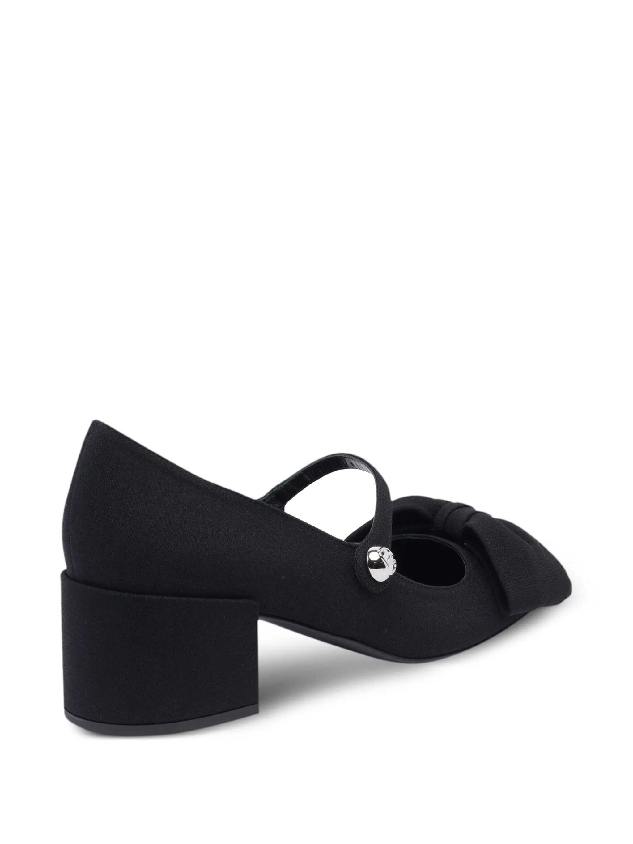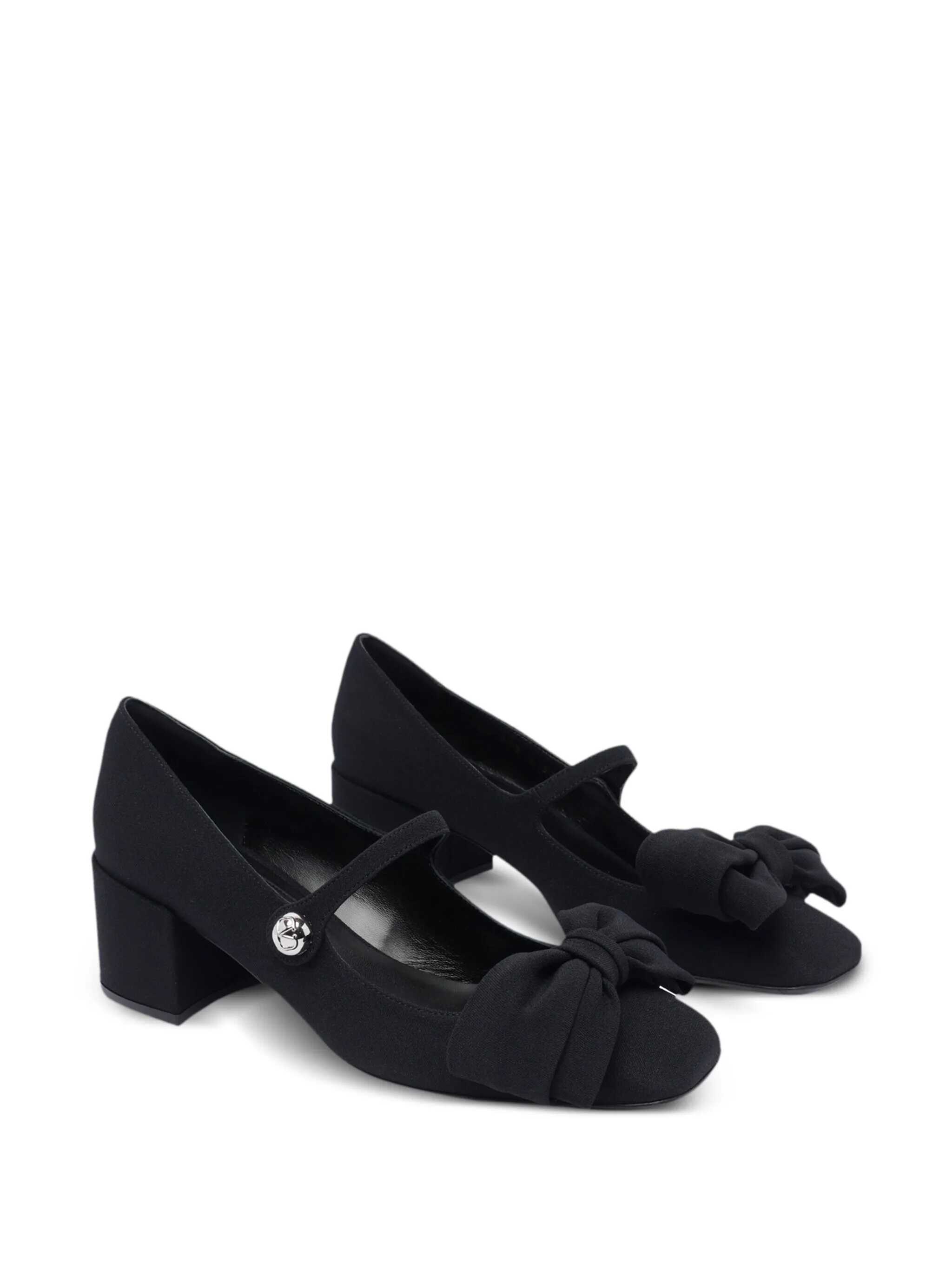 Black flats from Valentino Garavani featuring round toe, frontal bow detail, square heel and details. Size Type: Shoes Woman IT