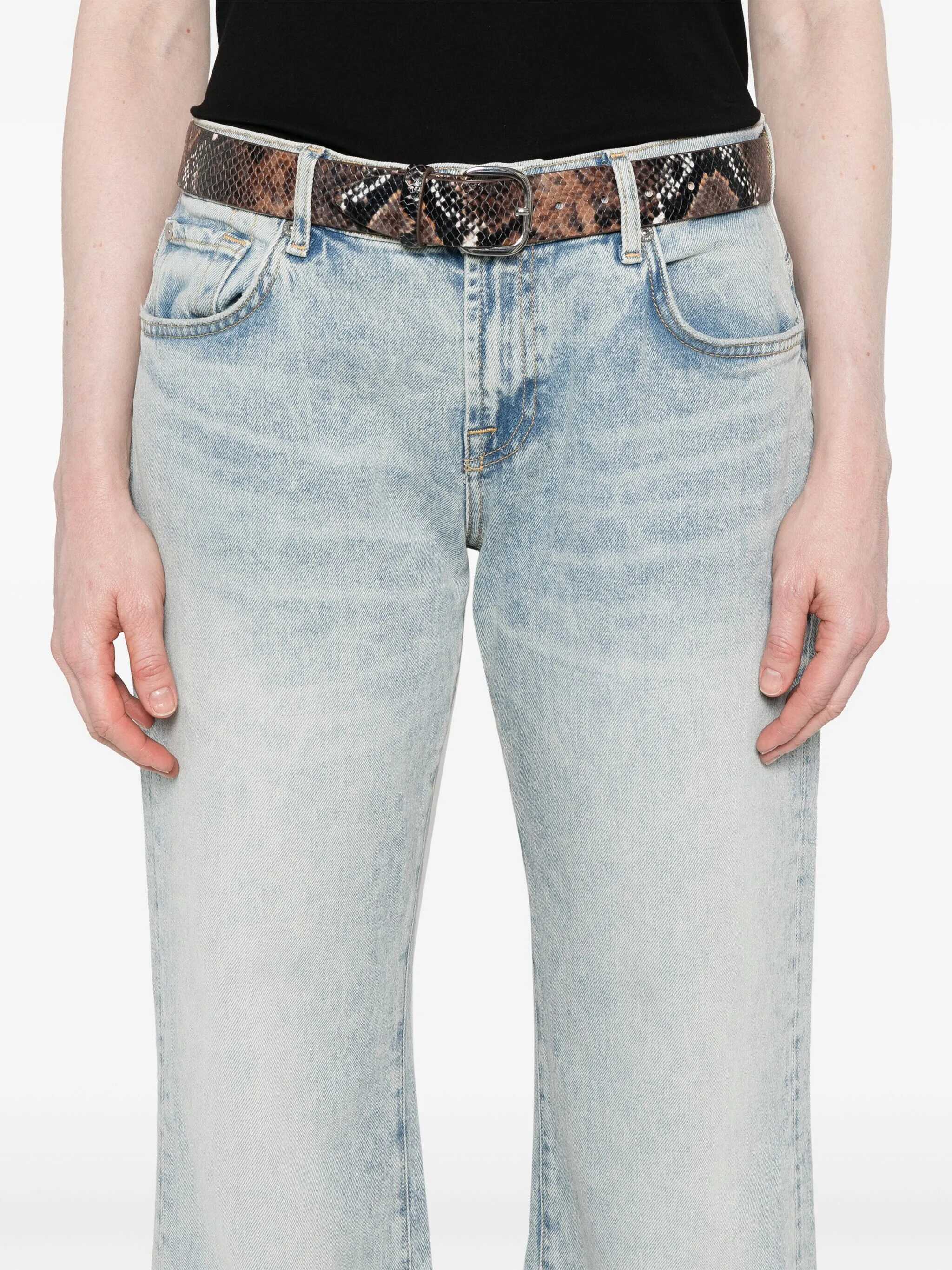 The Spencer Flare Sahara Cotton Jeans by 7For have a mid-rise waist and a five-pocket flare design. The front closure is button and zipper, while the waistband features belt loops. The garment is embellished with the brand's iconic pressure-printed signature leather patch applied to the back.