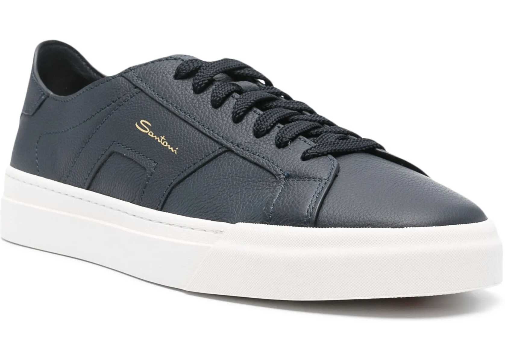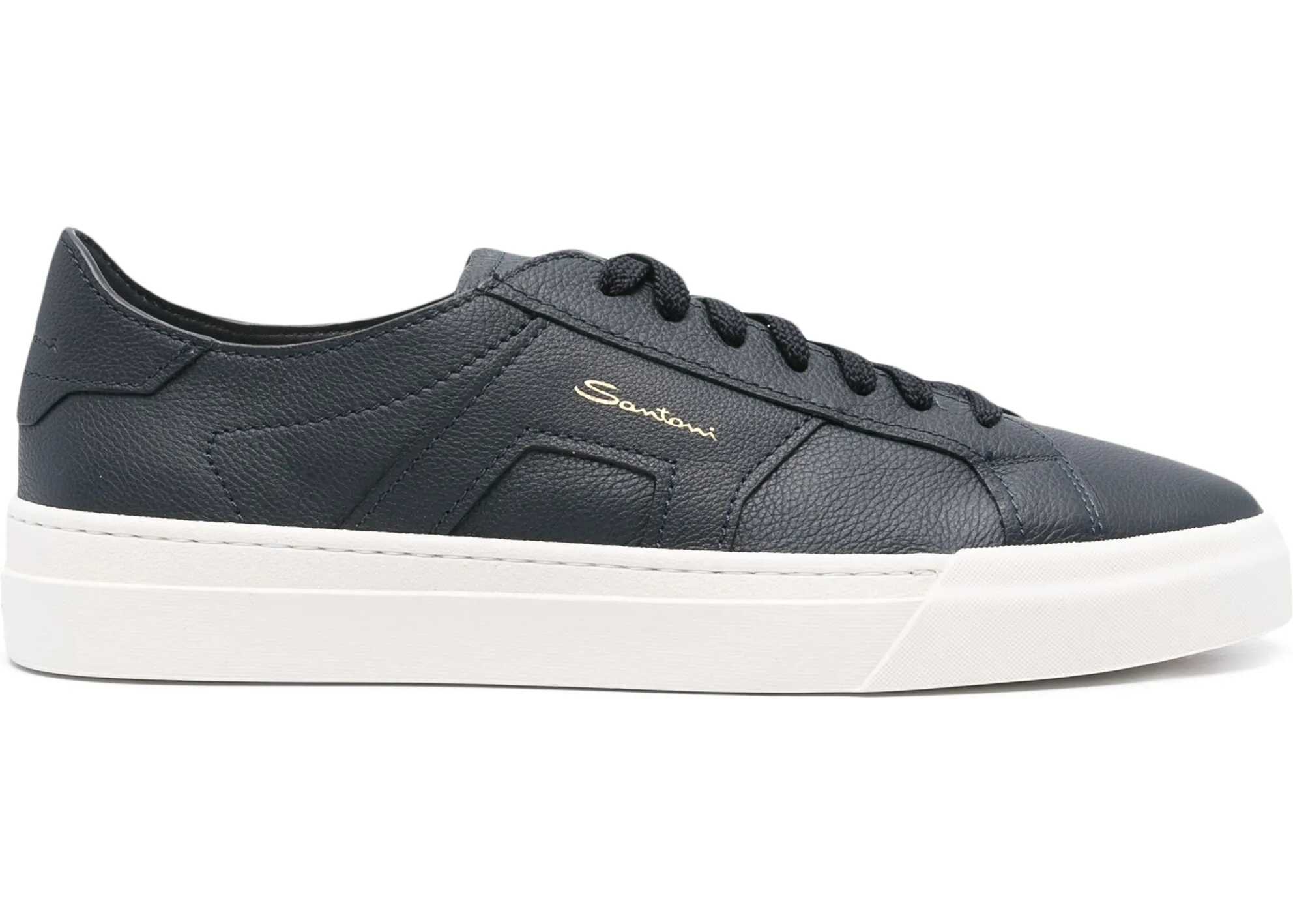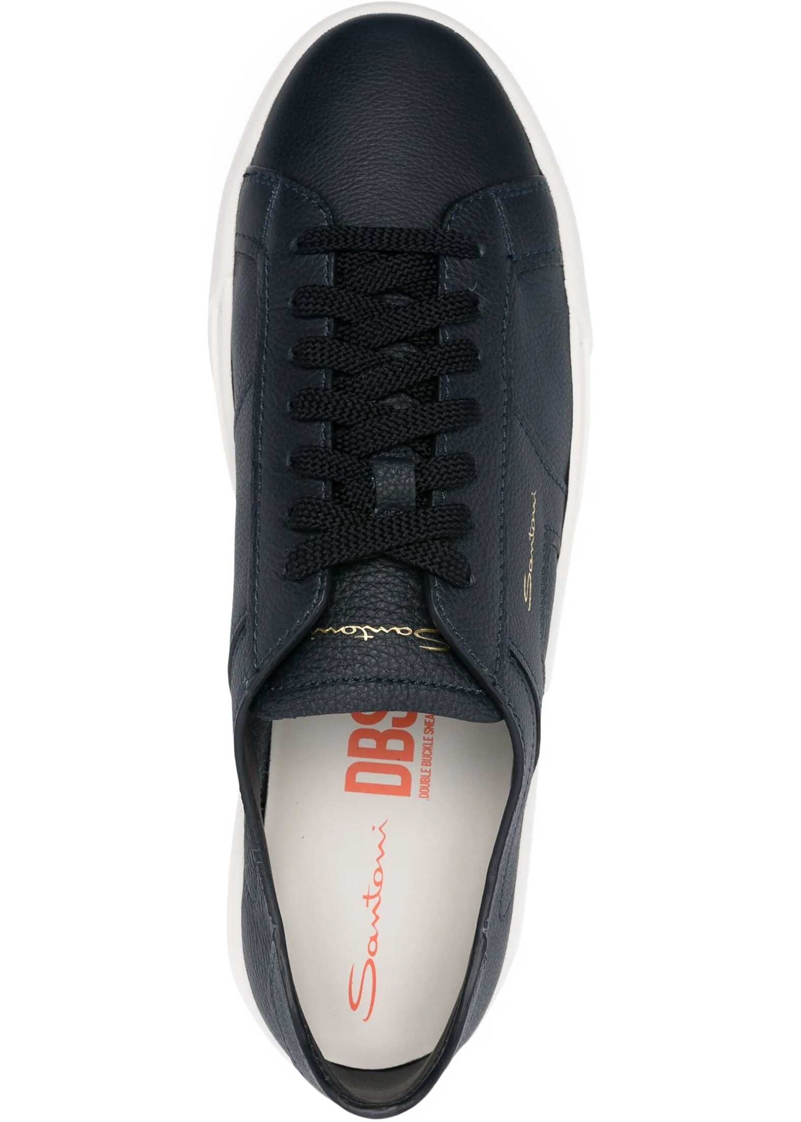 Santoni leather Sneakers with a round toe, front lace-up closure and monochrome paneled design. The iconic contrasting monogram is featured on the side panel, while a contrasting flat sole and logoed insole complete the look.