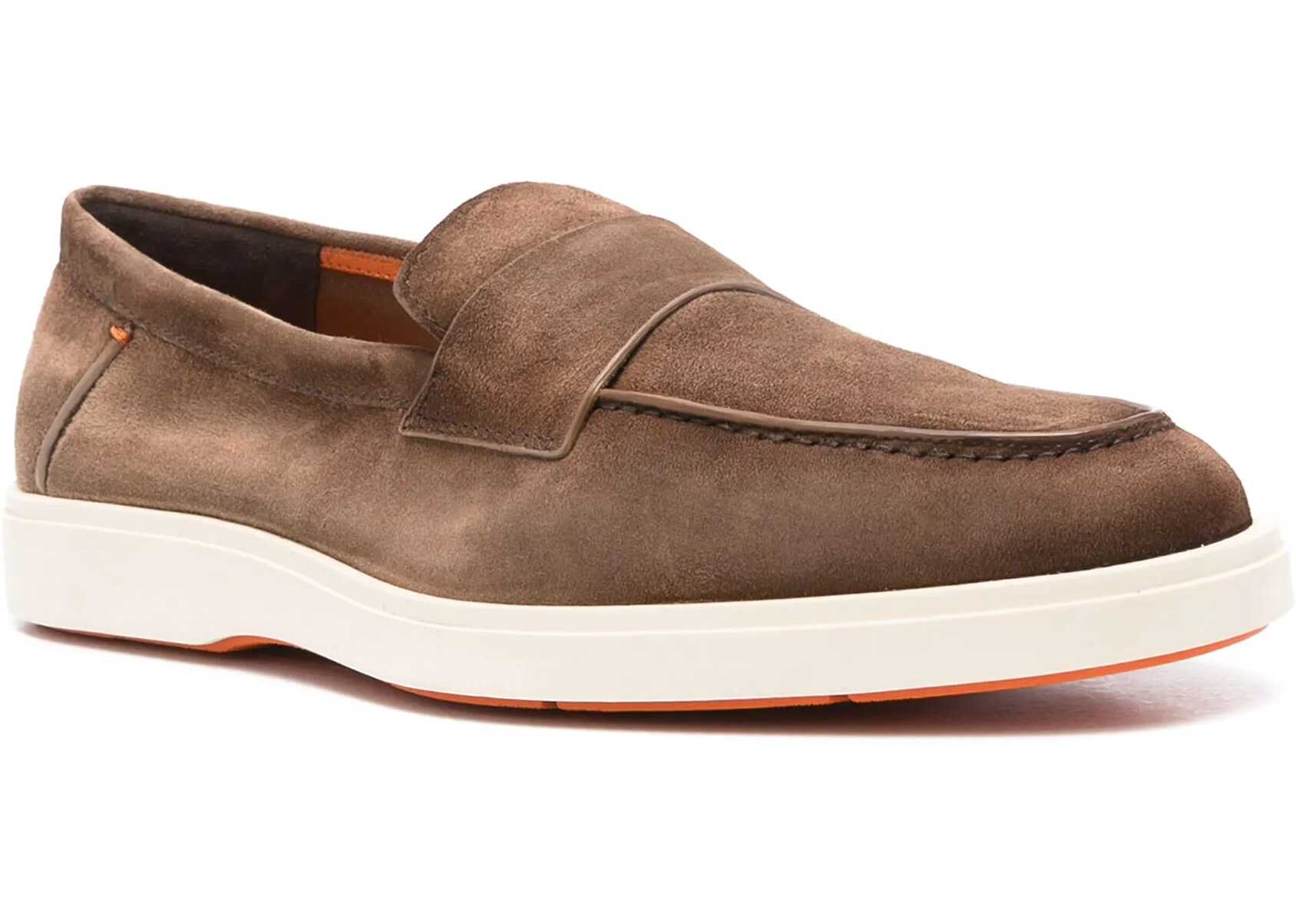 The suede Loafers by Santoni feature a refined and elegant design, with tone-on-tone stitching adding a touch of understated sophistication. The contrasting flat rubber sole not only provides comfort, but also gives them a modern and dynamic look. The slip-on design makes them practical and easy to wear, while the soft suede ensures a comfortable fit.