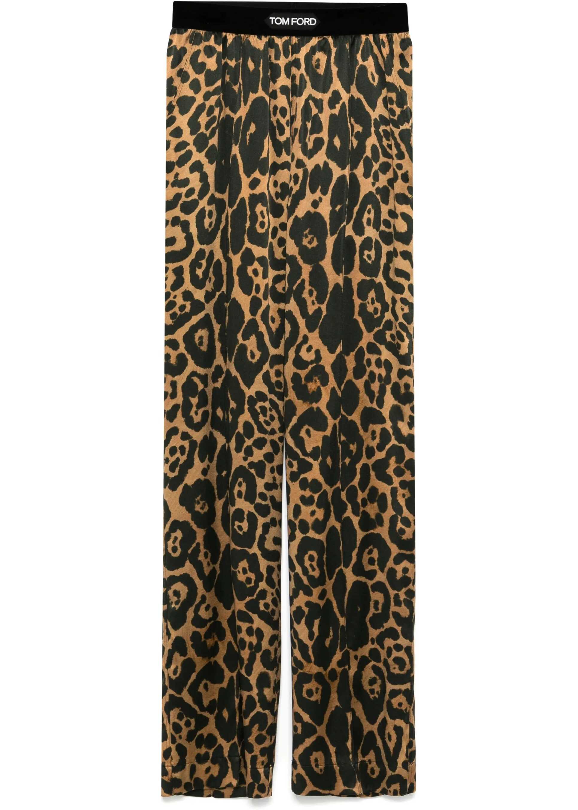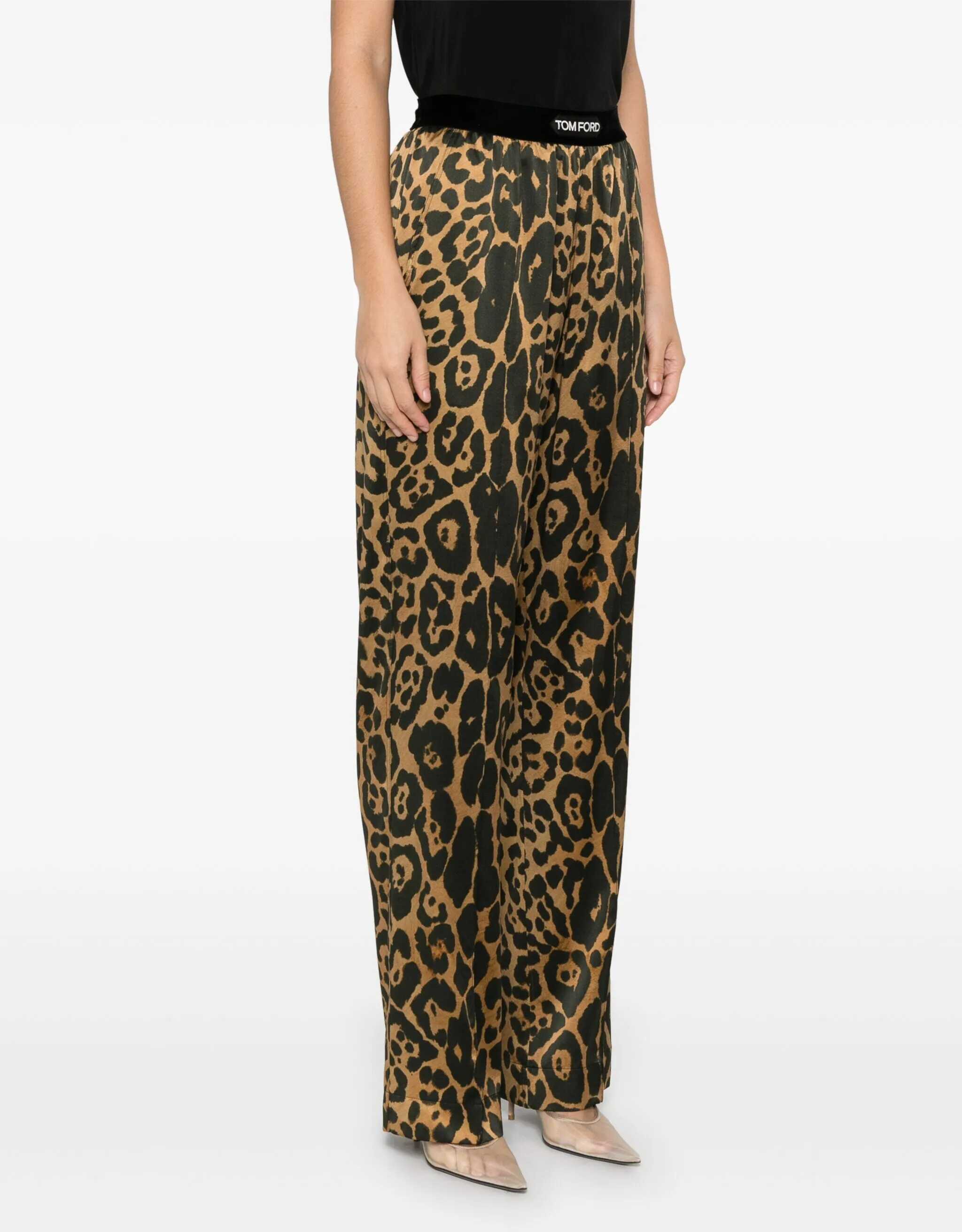 Tom Ford's silk Pants feature a contrasting elastic waistband for comfort and style. The all-over animal pattern adds a bold and distinctive touch to the garment. They feature two side welt pockets and two patch slit pockets at the back, combining functionality with elegant design.