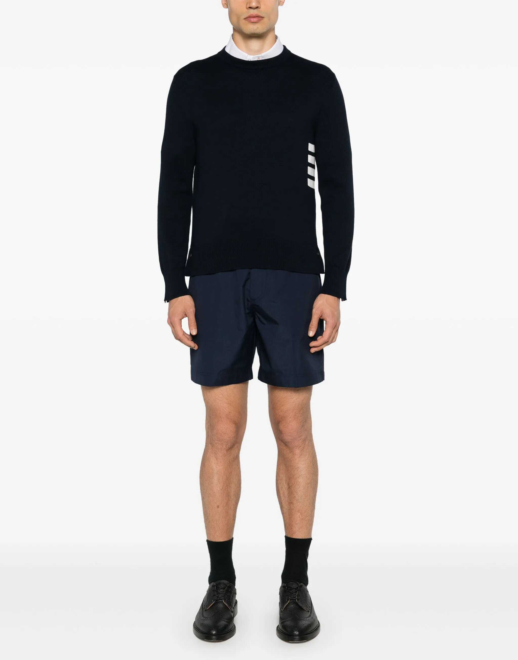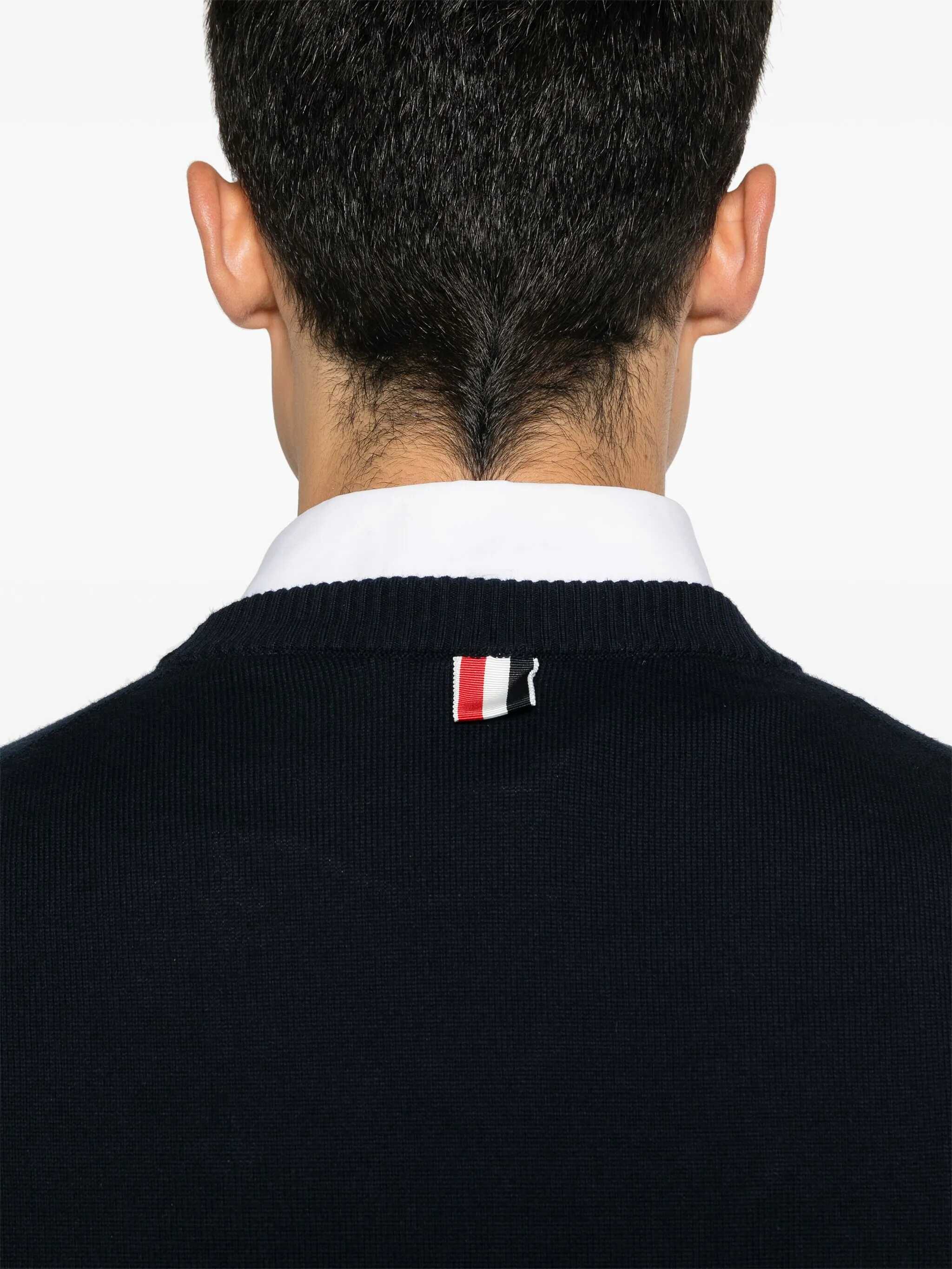 Thom Browne's cotton Sweater features a ribbed crew neck, ribbed cuffs and ribbed hem, ensuring a finished, comfortable fit. Button-adjustable side slits are embellished with a detail of the iconic bands, giving the garment a distinctive touch. Contrasting bands on the side panel add an additional element of style, creating a perfect balance between elegance and modernity.