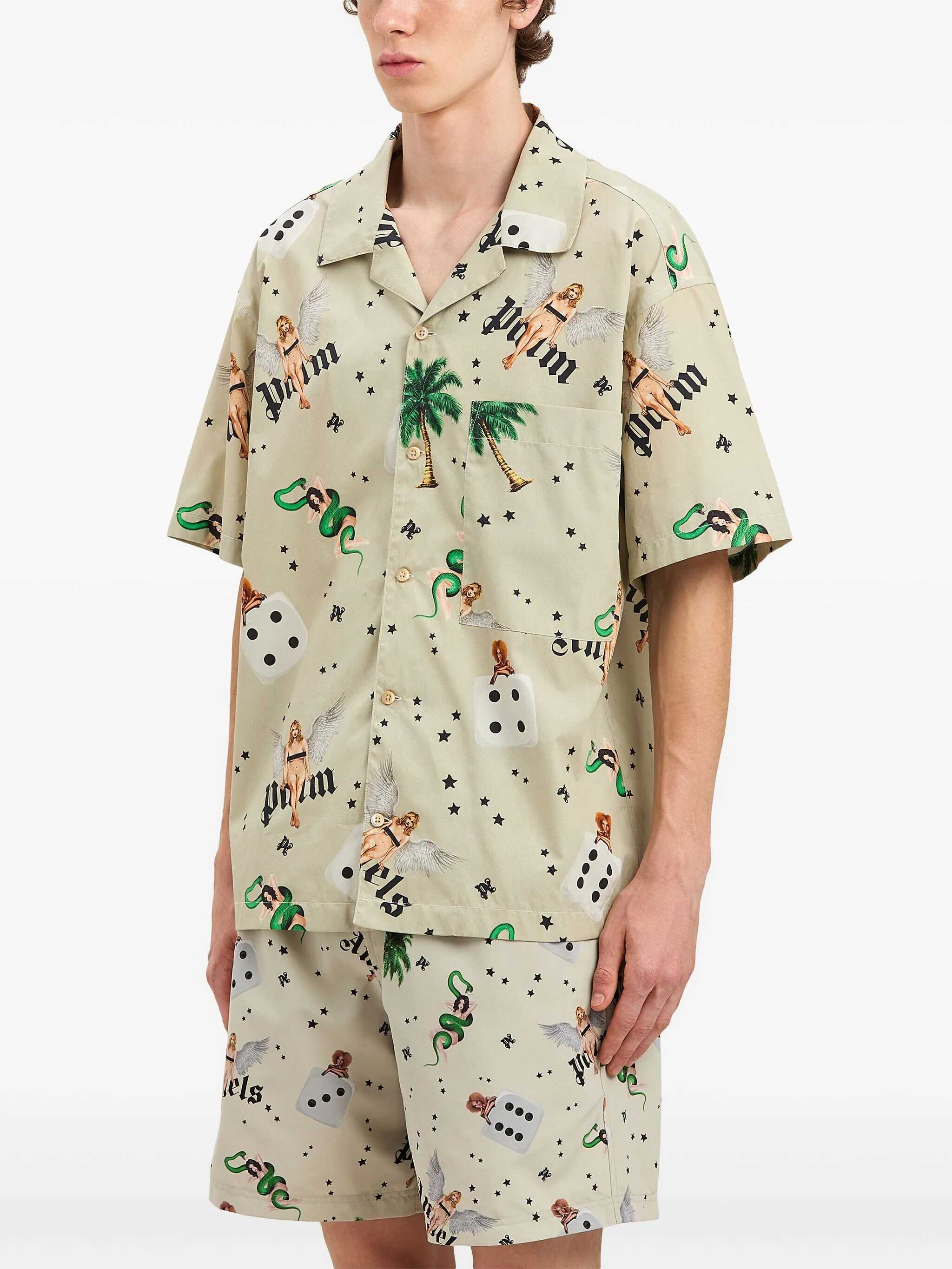The Bowling Pin Up Shirt from Palm Angels is a garment with a bold retro style, perfect for a distinctive casual look. With short sleeves and a classic collar, it features a front button closure. The brand's iconic logo and all-over printed pin-up designs add a touch of originality and vintage inspiration, making this shirt a must-have for those who love streetwear with personality.
