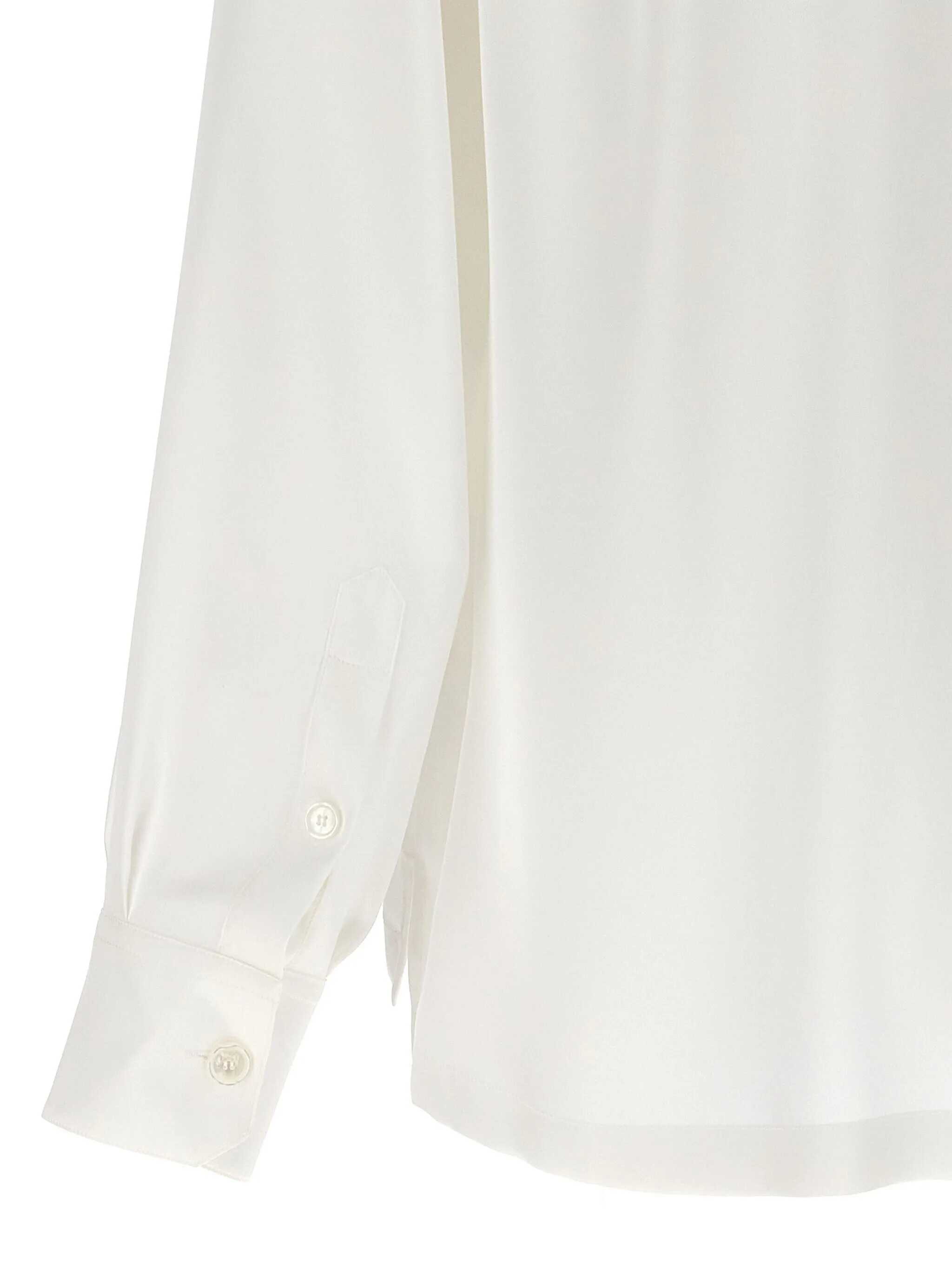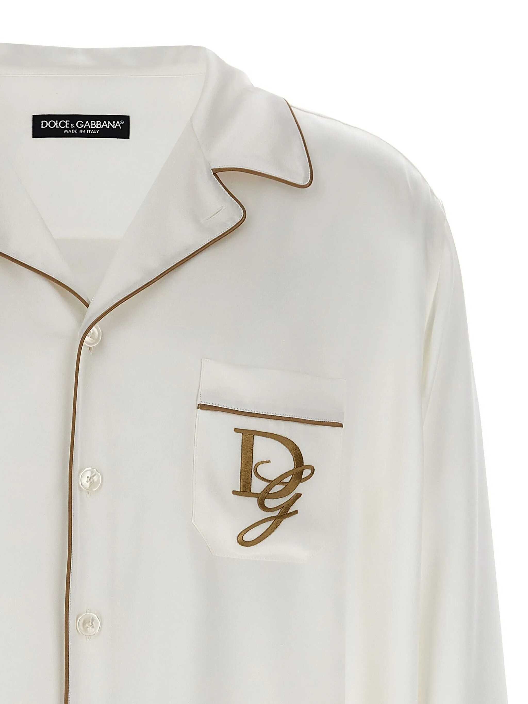 Silk satin pajama shirt, contrasting piping details, logo embroidery on the chest pocket, button closure, long cuffed sleeves, side splits