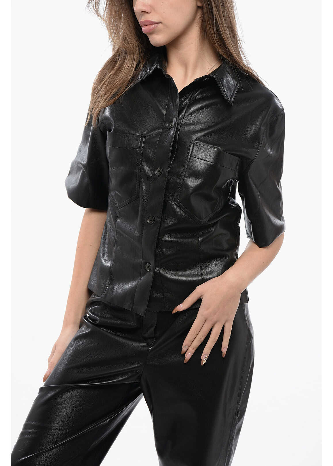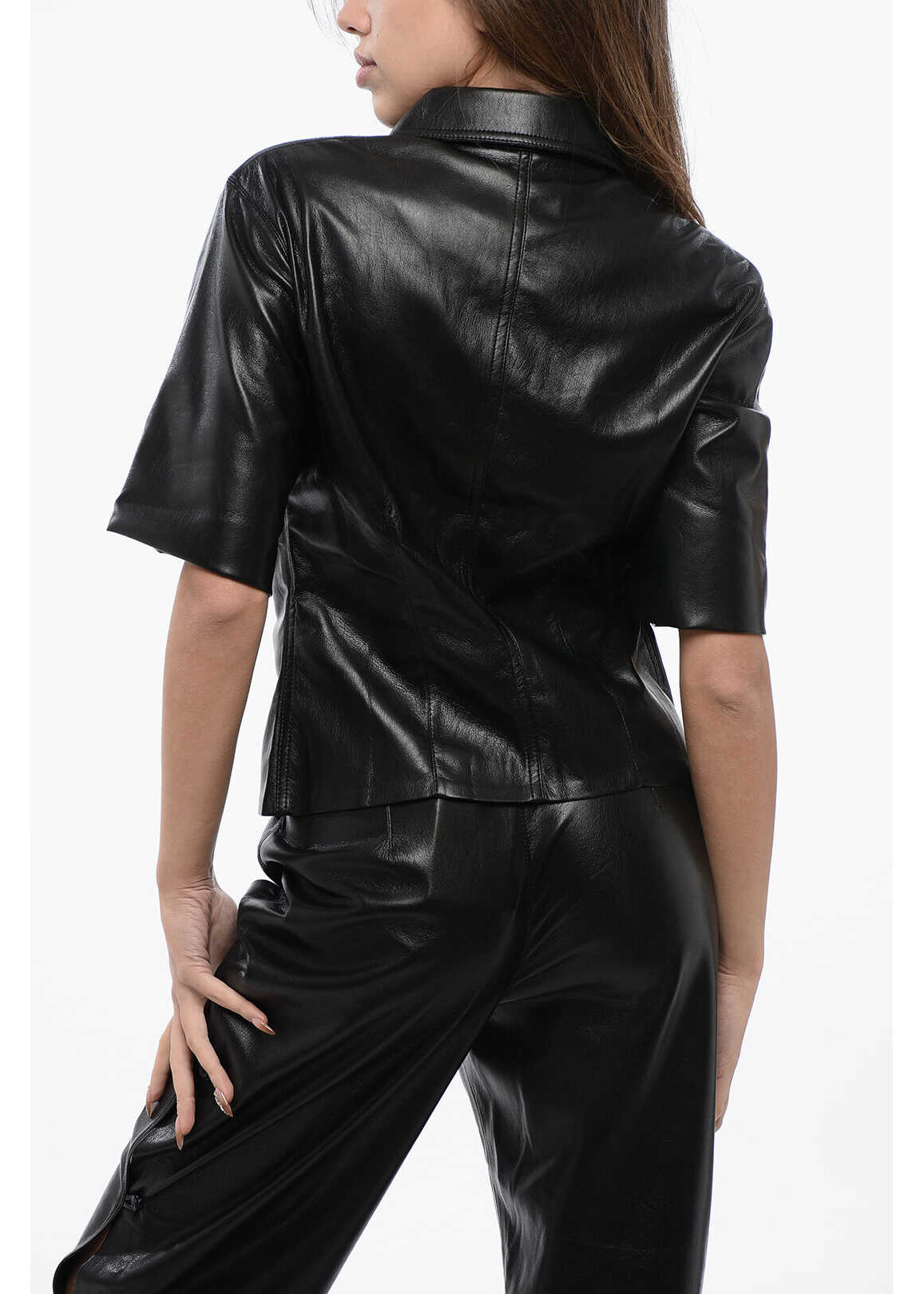 Breast pocket Short sleeves Buttons Front closure Black Spring-Summer Materials: 60%PU 40%PL Product code: P640337