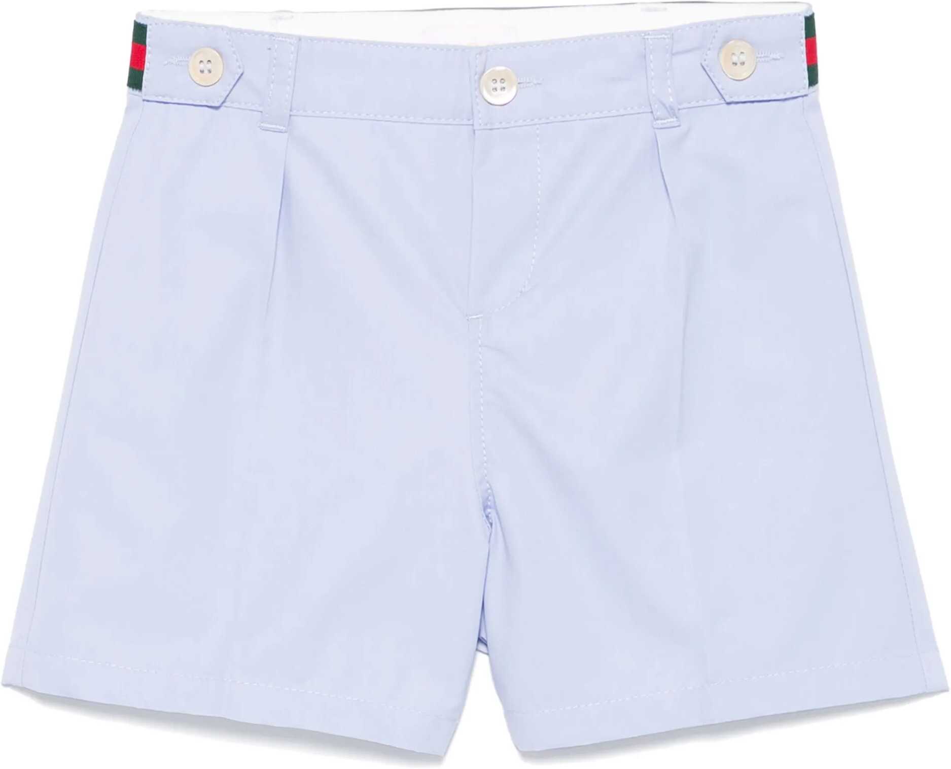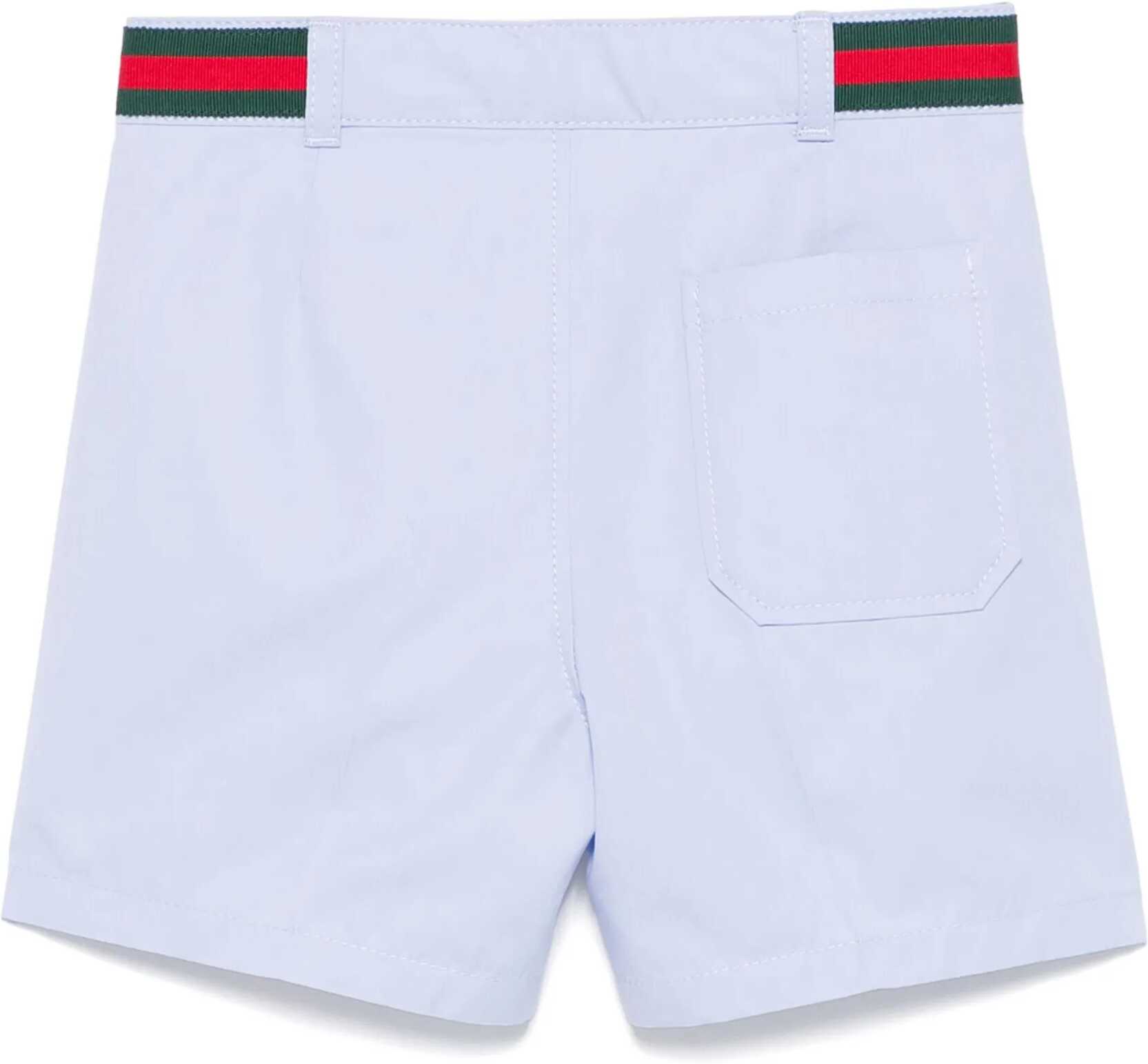Cotton boy's Shorts by Gucci feature belt loops on the waistband and an adjustable inner waistband for a customizable fit. The front closure is buttoned, while the multicolored web detail on the waistband adds a distinctive brand touch. On the back, there is a patch welt pocket, perfect for small items.