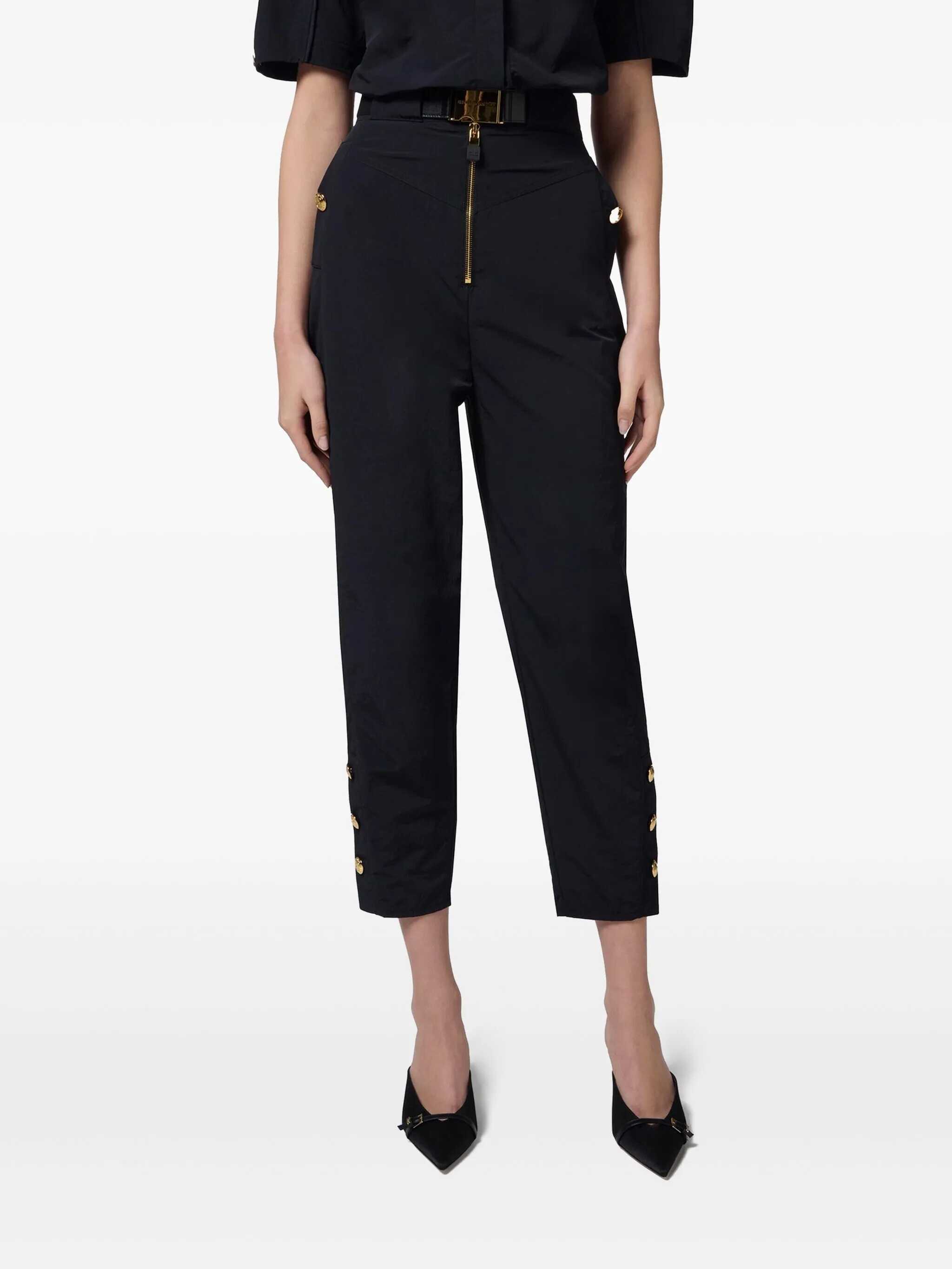 Elegant black trousers with belt included, made of 100% polyamide. The light and resistant fabric guarantees an impeccable fit, ideal for formal and professional contexts. The matching belt completes the look with a sophisticated touch.