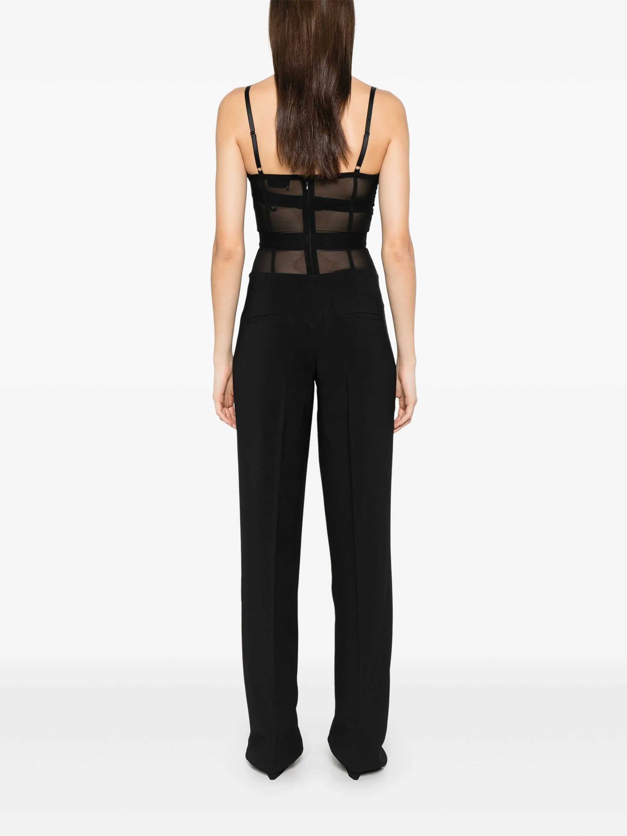 Elegant black jumpsuit by Elisabetta Franchi, made of 95% polyester and 5% elastane to guarantee a perfect fit to the body and a slender silhouette. The refined design makes it ideal for formal events and gala evenings. A sophisticated garment that combines comfort and style, perfect for those who love to stand out with class.