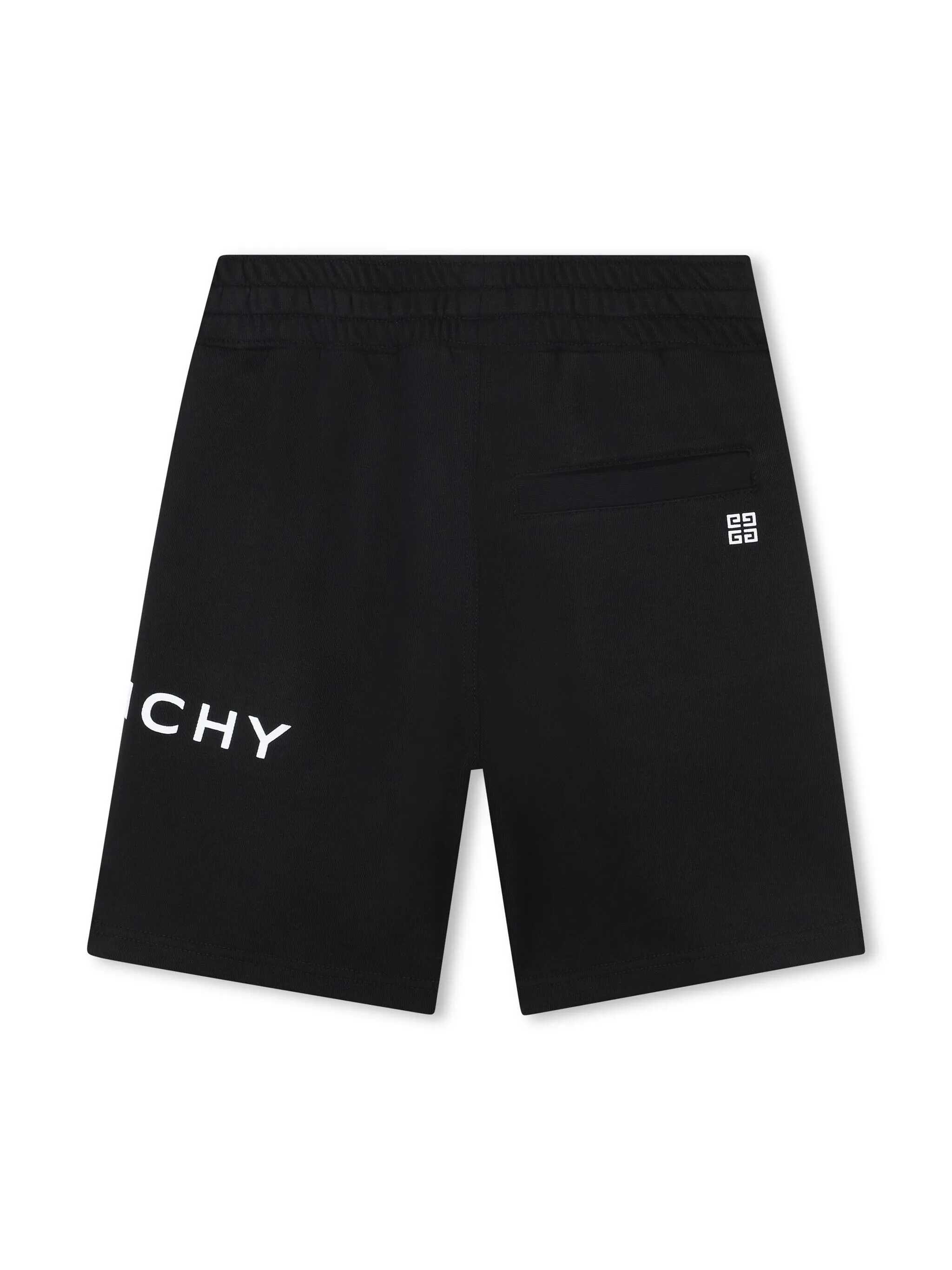 Fleece shorts, 85% organic cotton 15% polyester, elasticated waist with drawstring, Givenchy print on left side, 4G print under back pocket.
