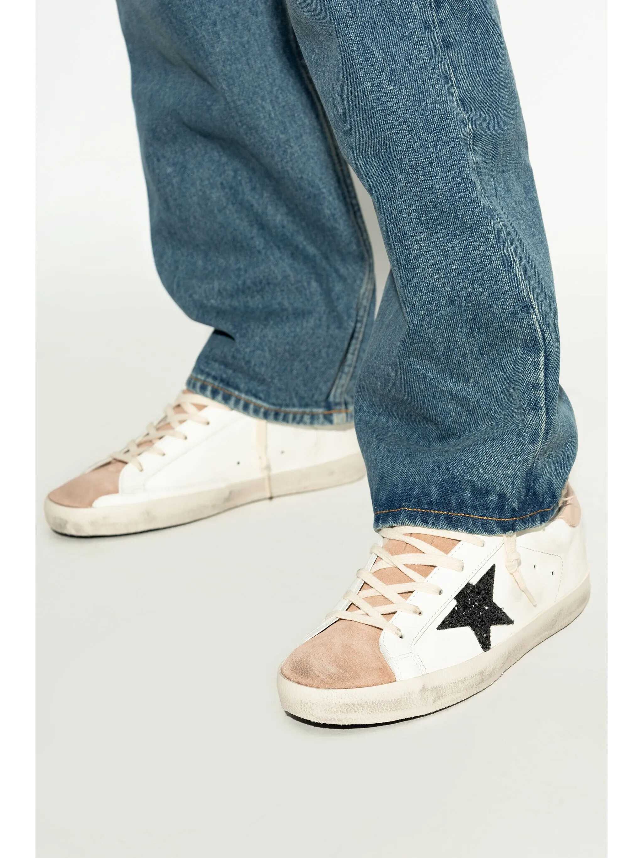 Superstar Sneakers in white suede and leather, round toe, laces, logo on upper tongue, glitter details, star on side, rubber sole, 100% leather, Made in Italy