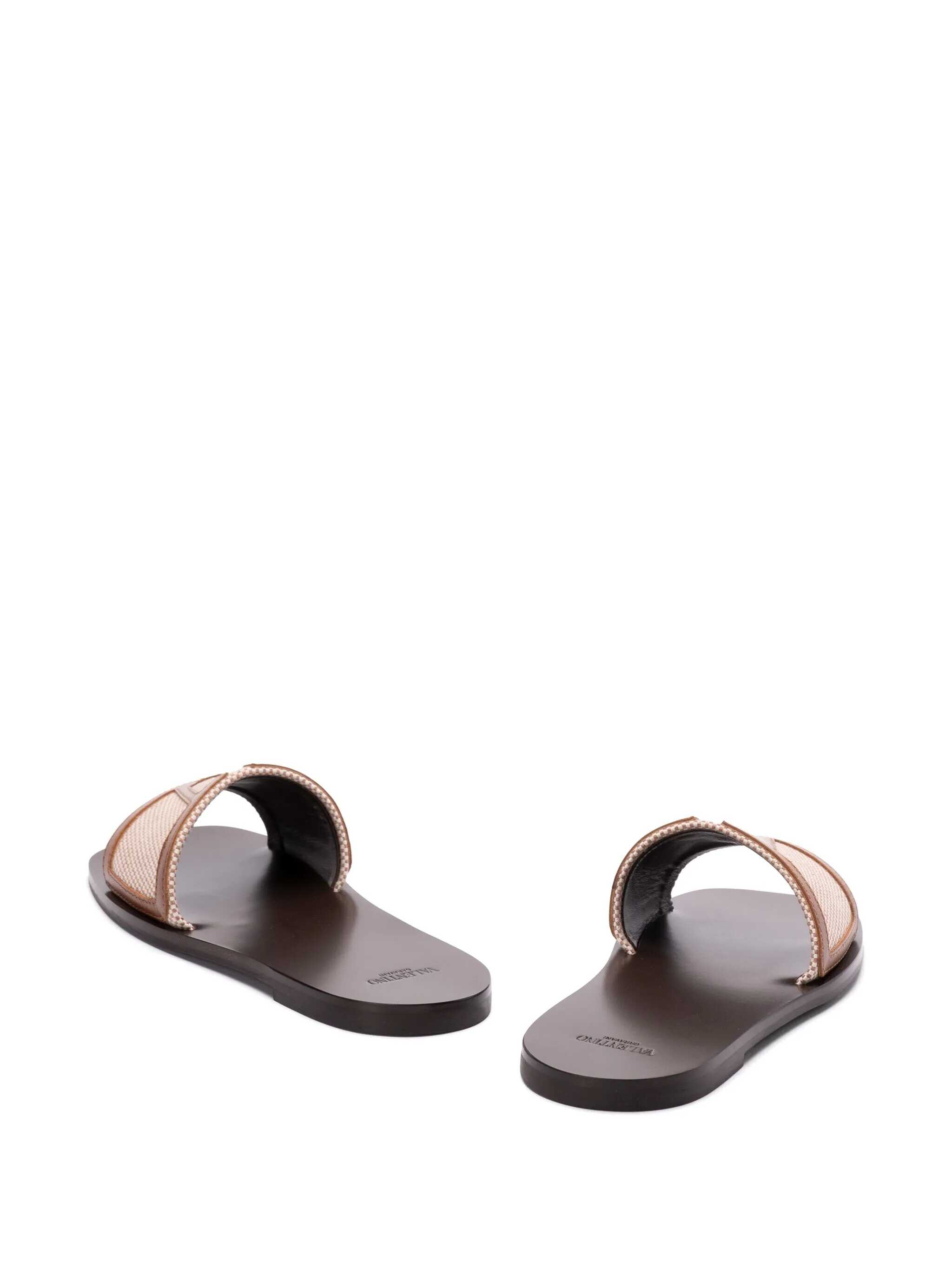 Two-tone woven canvas sandals and leather 'VLogo' with leather sole and rubber sole