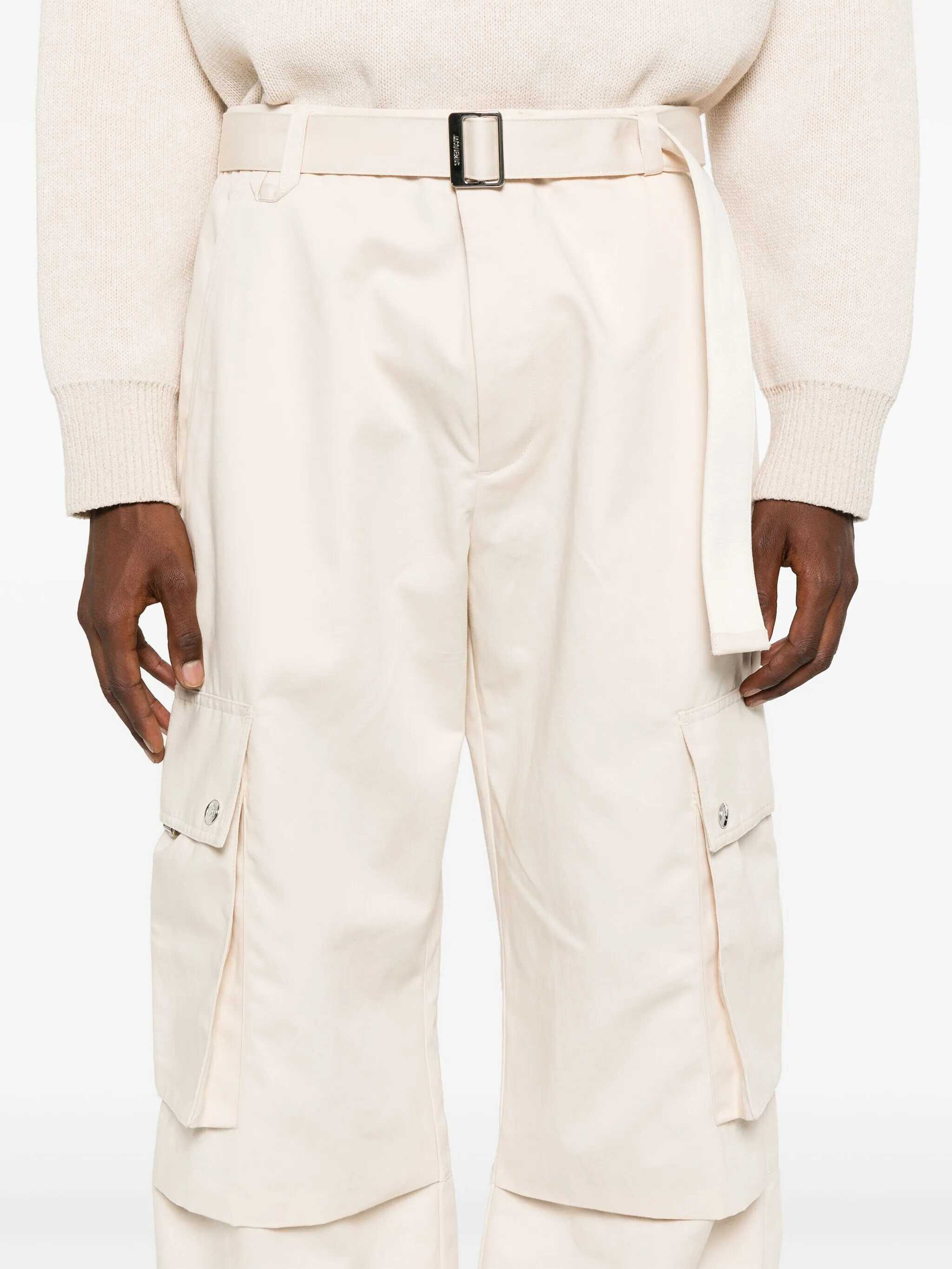 Le Cargo Pants from Jacquemus offer a modern, functional look. They feature a front zipper and button closure, with an adjustable built-in waistband for a customized fit. They feature two side welt pockets, a buttoned back patch pocket and two side cargo pockets, adding a practical and stylish touch.