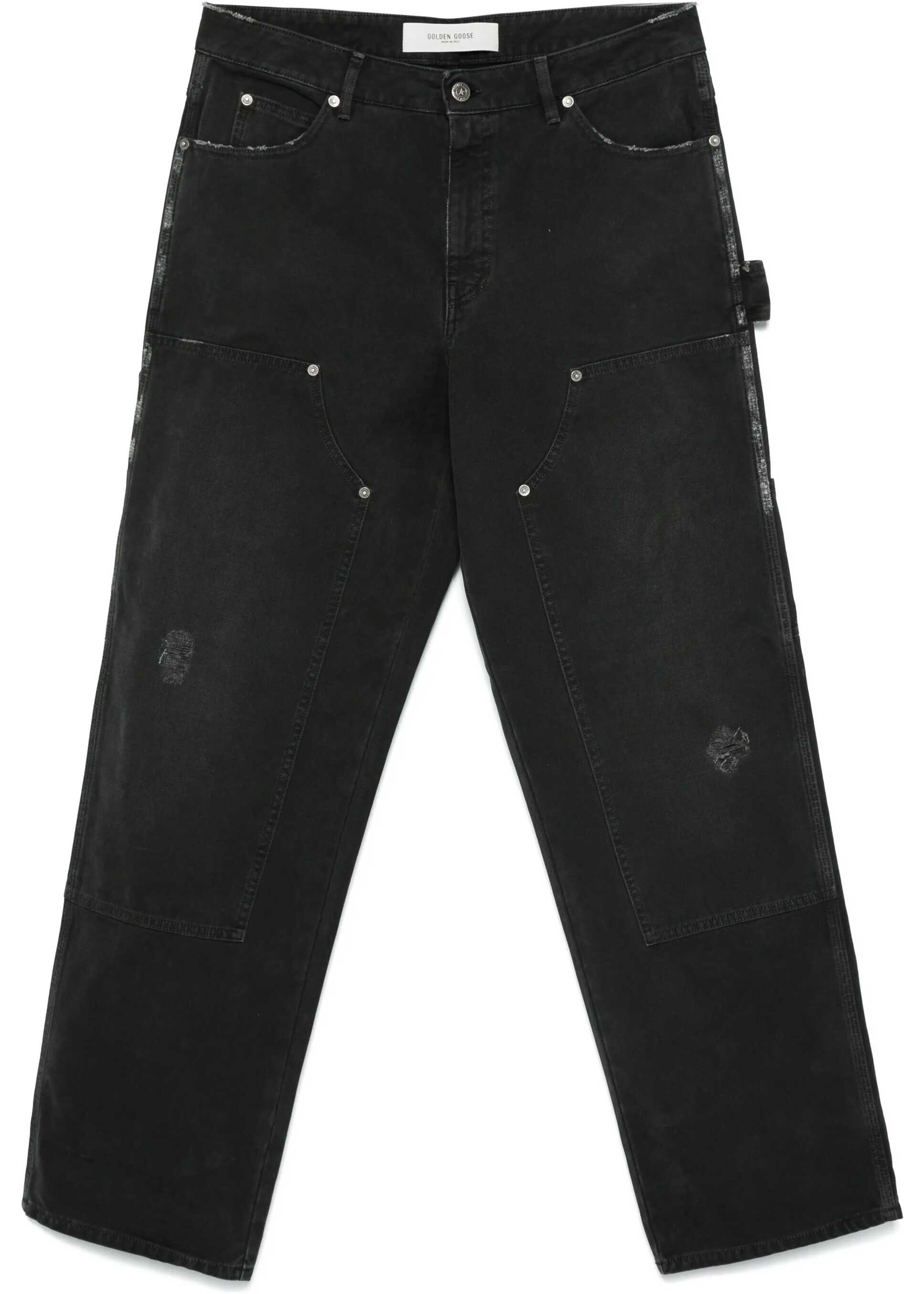 Golden Goose's Journey Jeans are a five-pocket style, featuring a high waist and a front button and zipper closure. They feature a belt loop at the waistband, offering an extra option for style and functionality. The two tone-on-tone appliqué pieces on the front add a distinctive touch, creating an interplay of textures that enhance the minimalist design.