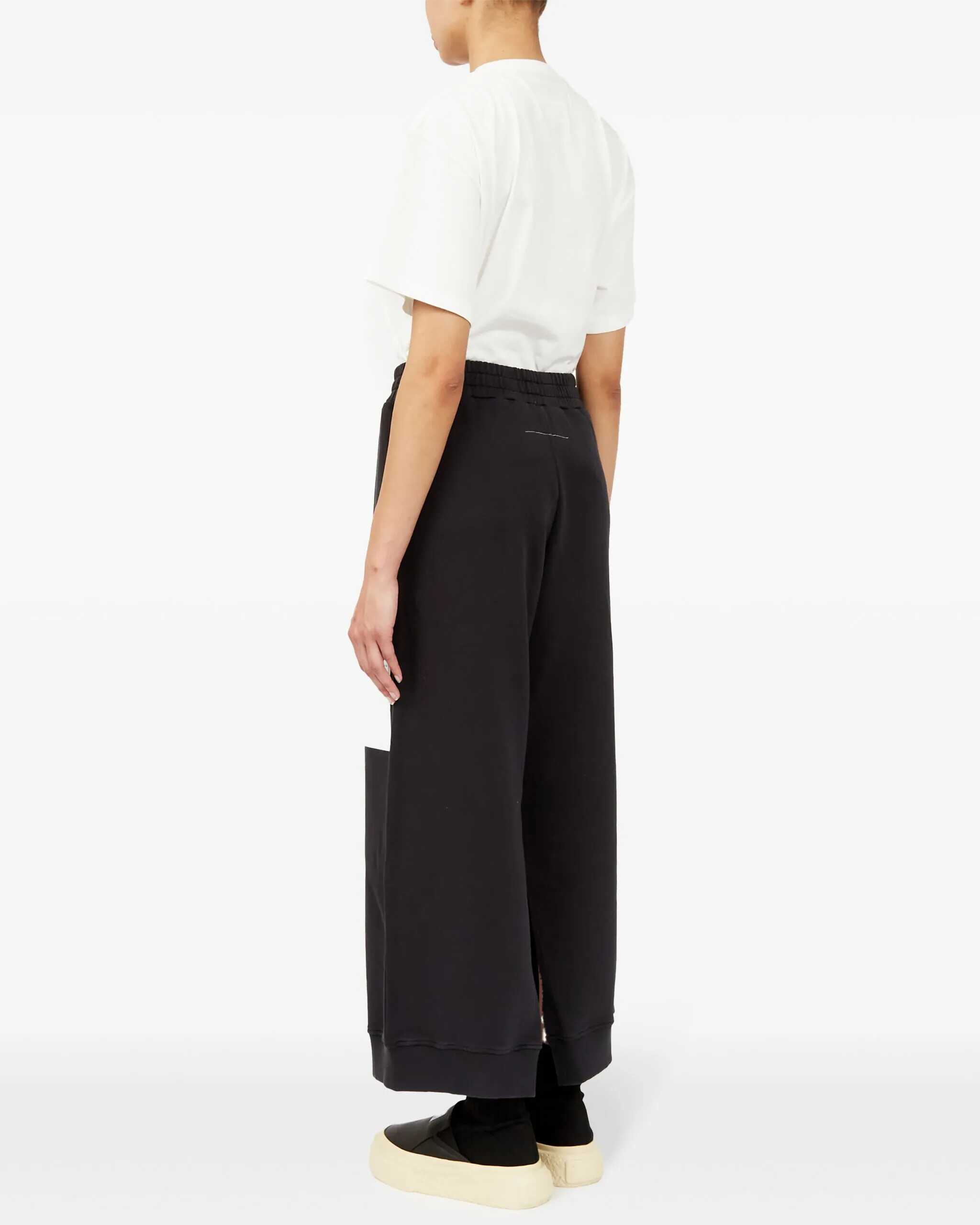 MM6's Sweatpants are a sporty-chic piece, featuring an elasticized waistband and elasticized hems that ensure a comfortable, modern fit. The maxi print on the front with the brand's iconic contrasting logo adds a distinctive and bold touch, making the pants a unique and recognizable piece.