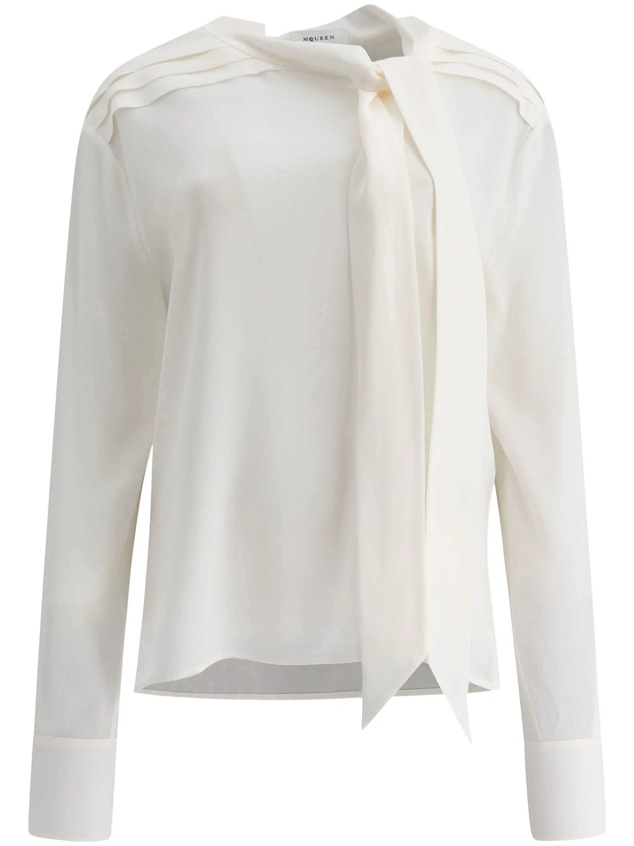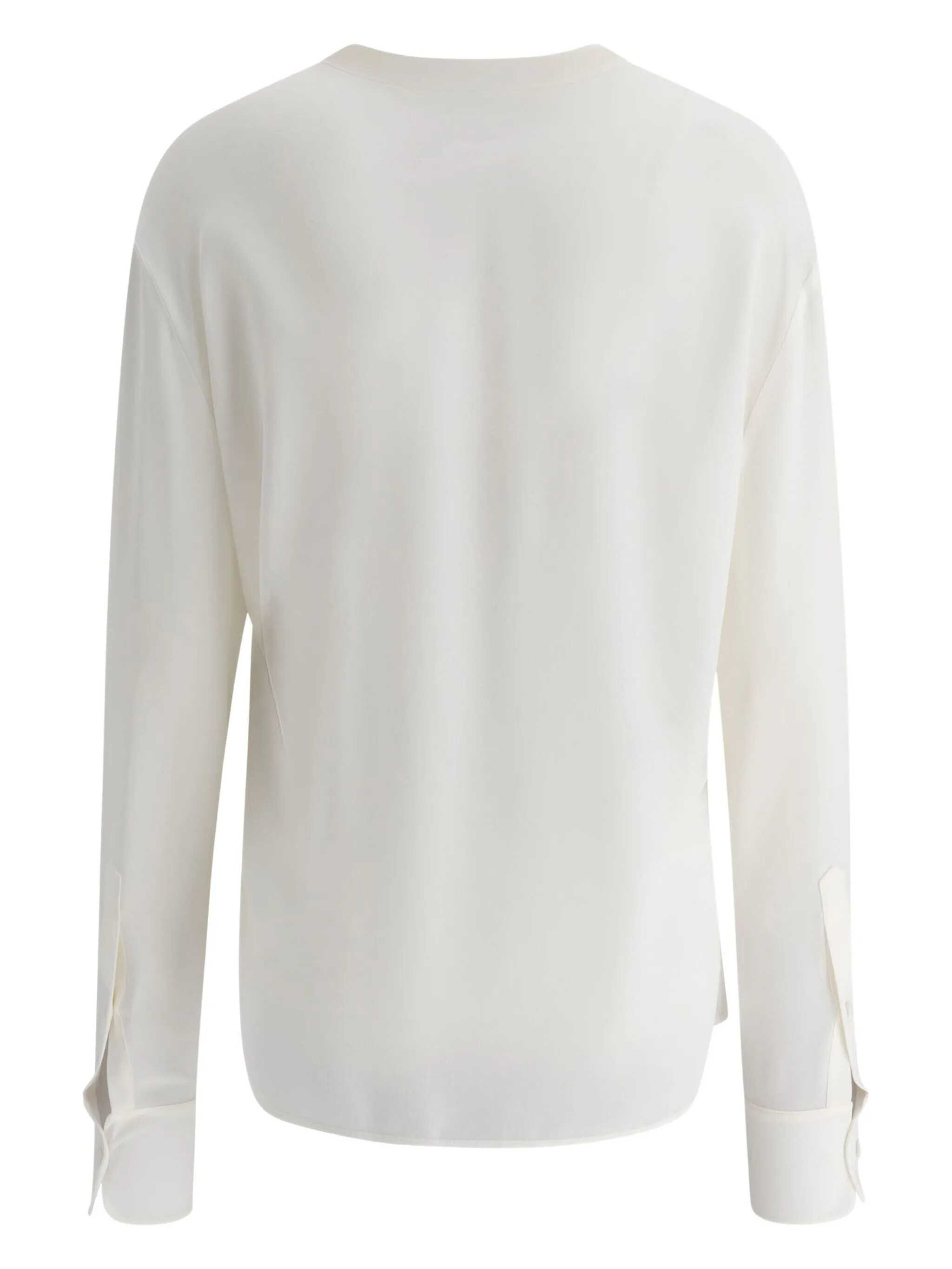 Shirt in beige silk, lavallière, long sleeves, buttons on the wrists, straight hem, 100% silk