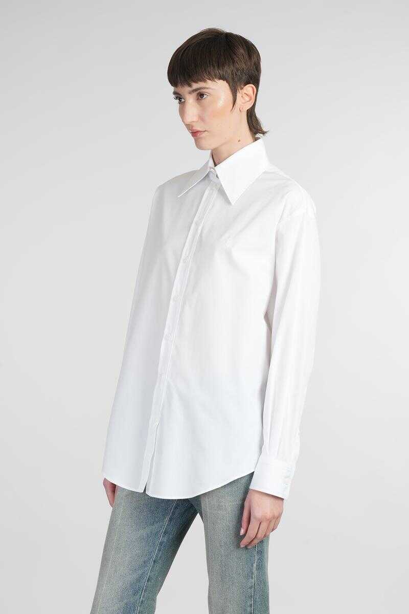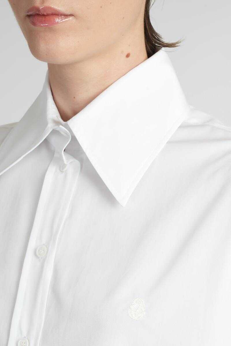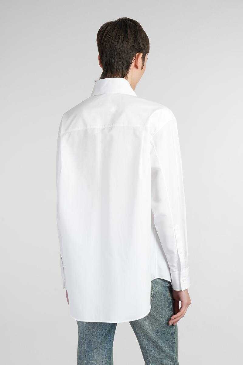 Shirt in white cotton, collar, long sleeves, frontal buttoning, curved hem, embroidery logo on chest, 100% cotton, Made in Italy