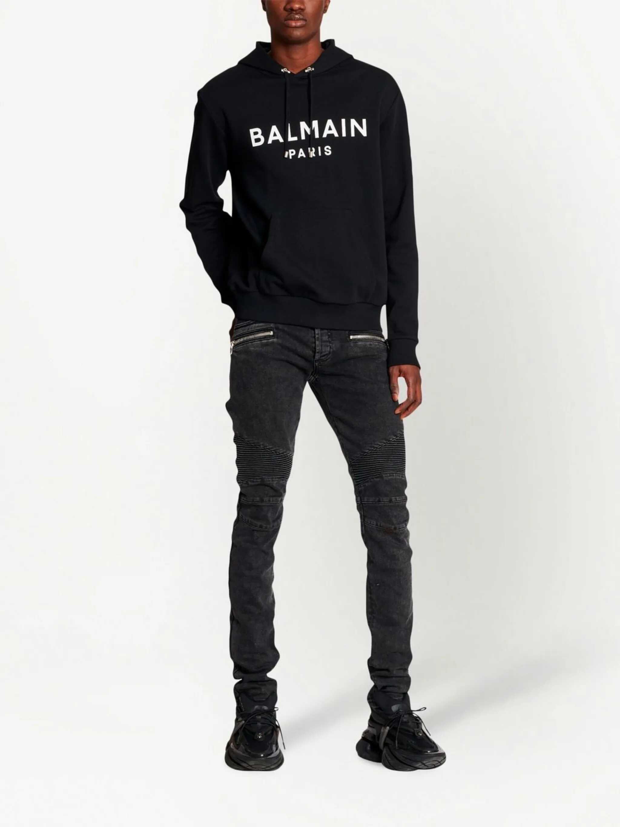 Cotton hoodie with front logo print, kangaroo pocket, long cuffed sleeves.
