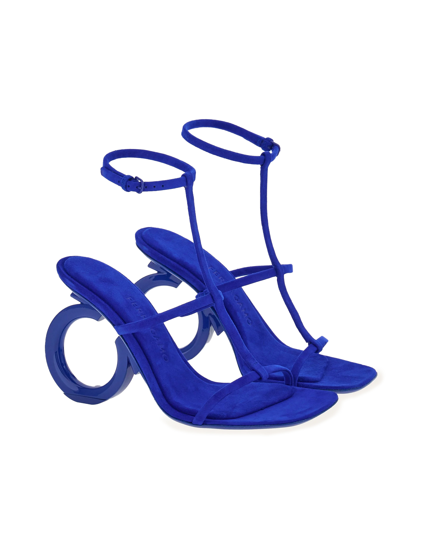 Sensual and contemporary sandals: the square toe is paired with a T-strap construction with an adjustable ankle strap. The sculptural heel is a new take on the Gancini silhouette with a lacquered finish. The padded insole and a stretch insert on the second detail ensure comfort with every step.