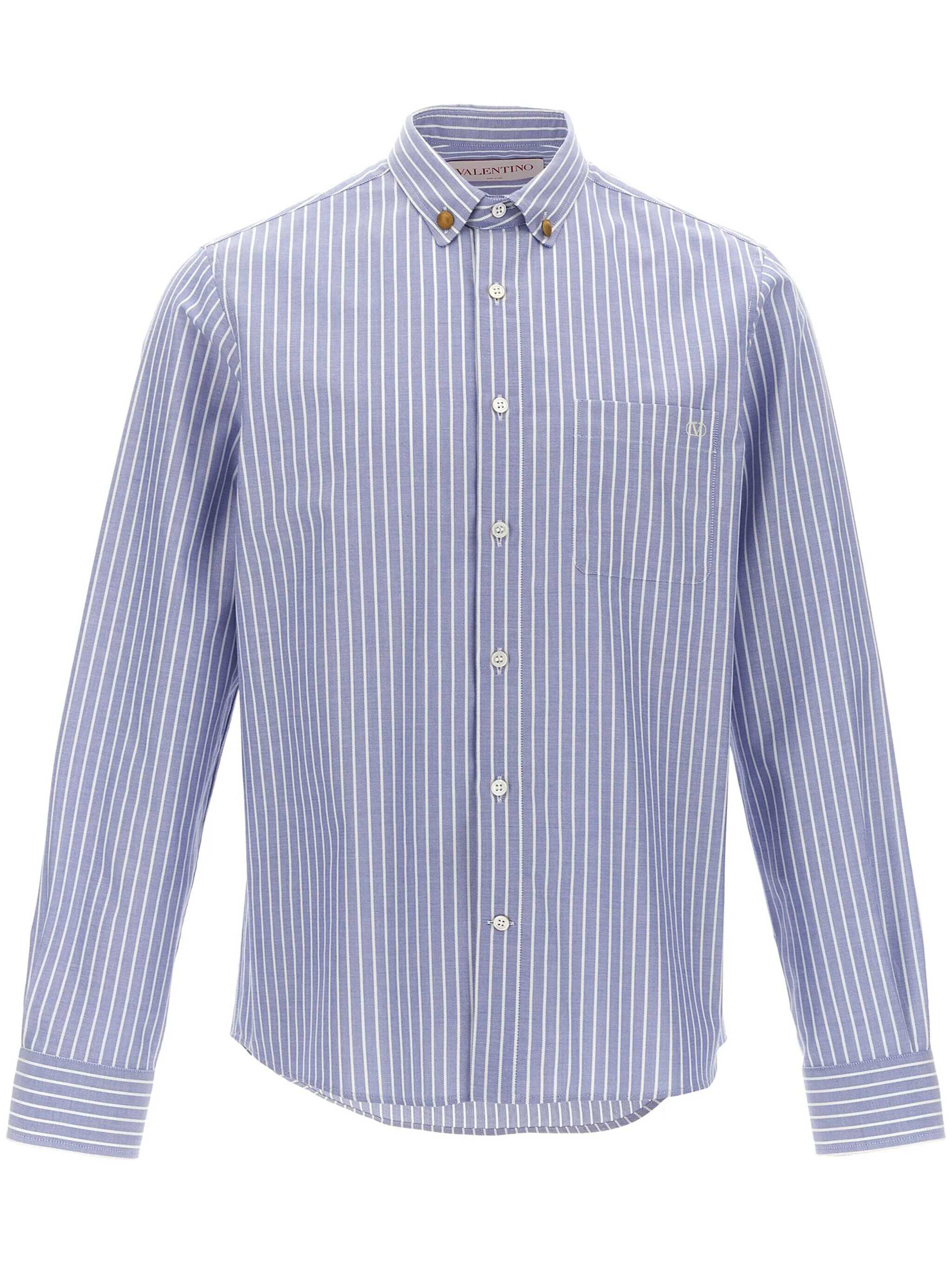 Striped cotton shirt, with button-down collar, button closure, pocket with logo embroidery, long cuffed sleeves