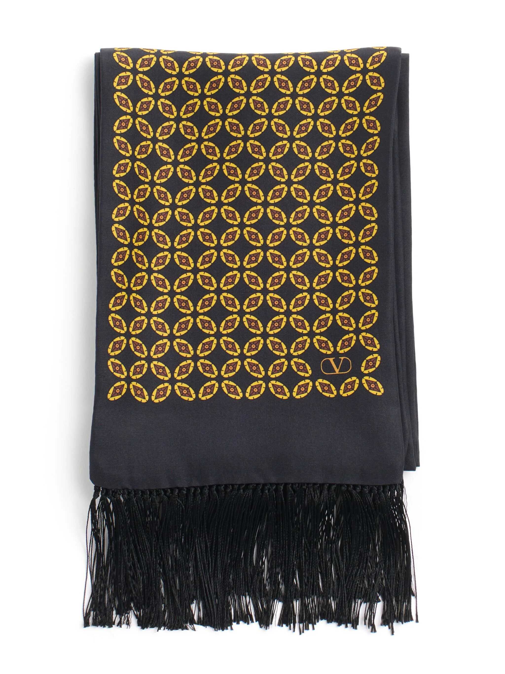 Silk scarf with fringes and all-over 'Chamber' print