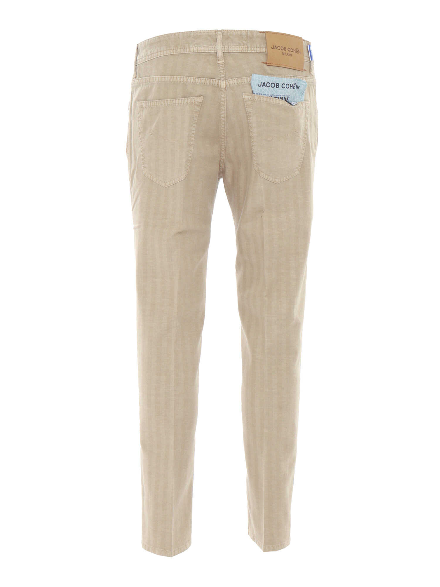 5 Pocket Slim Cropped Carrot Scott Trousers by JACOB COHEN. Beige jeans with a modern cut in a 69% cotton, 29% linen and 2% elastane blend. Comfortable and sophisticated, perfect for casual-chic looks
