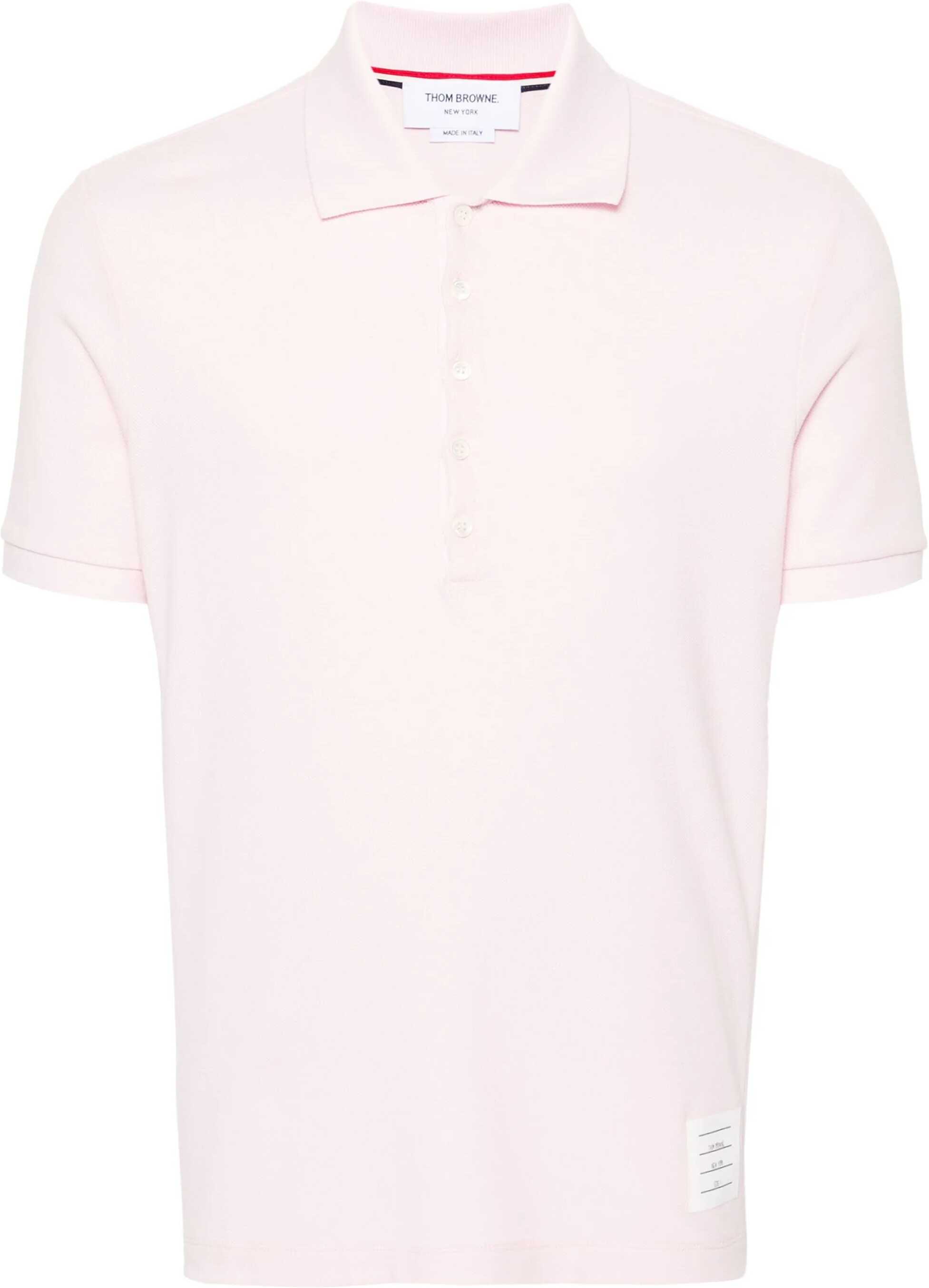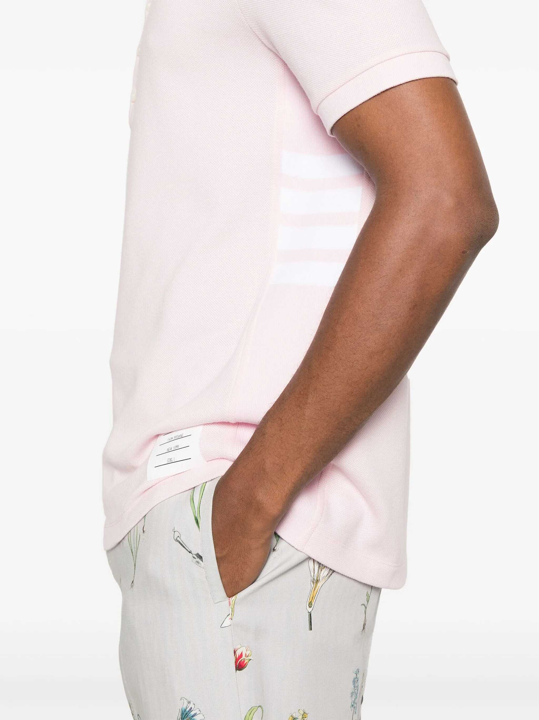 The Cotton Polo Sweater by Thom Browne features a classic collar and buttons on the front for a stylish and practical closure. The brand's iconic monogram patch applied to the front adds a distinctive touch. The iconic contrasting horizontal bands on the side panels recall the brand's signature style, creating a unique visual detail. A sophisticated and trendy garment, perfect for a casual-chic look.