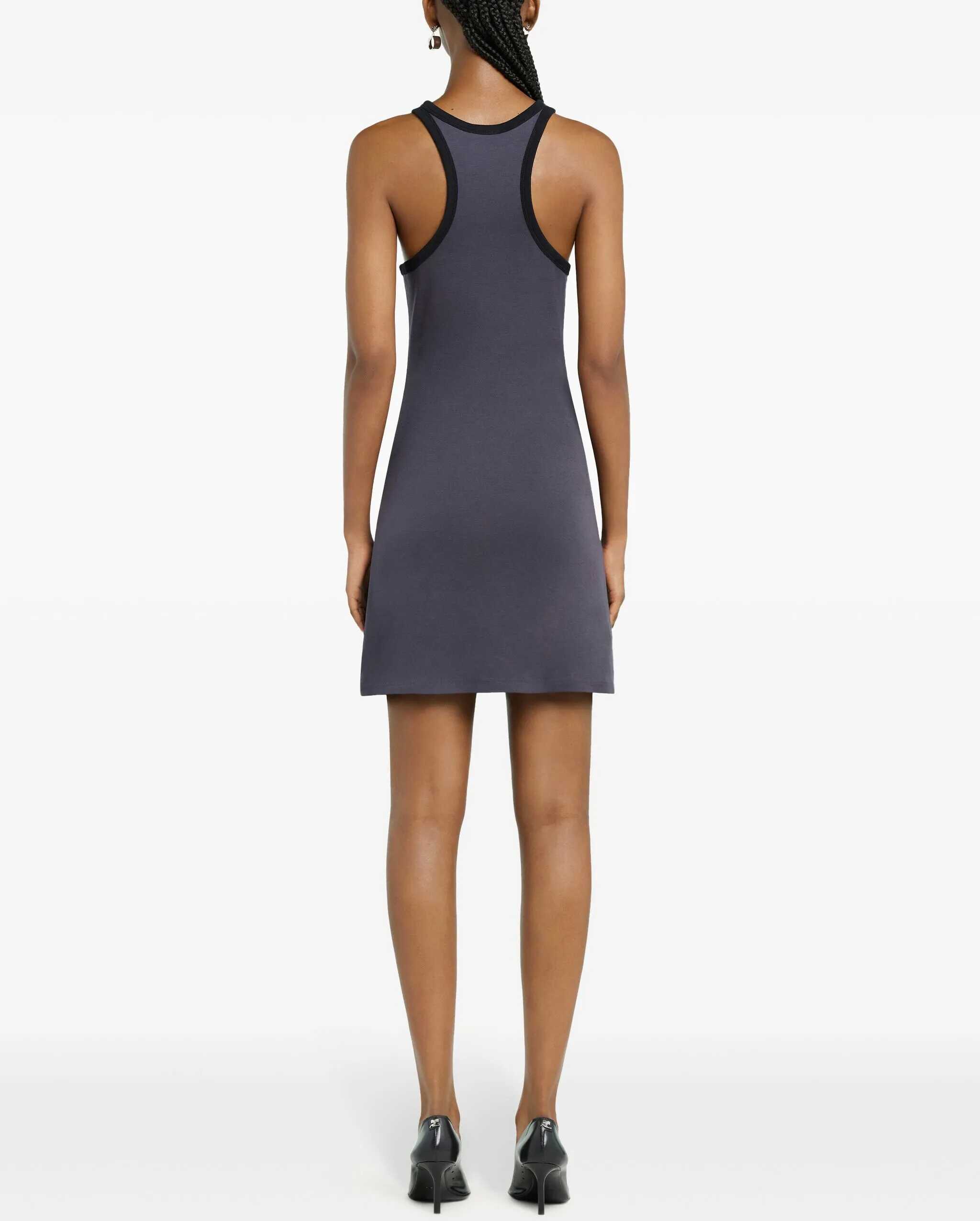 The Cotton Scuba mini Dress by Courrèges is a modern, minimalist piece, characterized by its sleeveless design and Olympic neckline that lends a bold, sporty look. The crew neck with ribbed hems adds a note of structure, while the brand's iconic logo sewn on the front underscores the garment's authenticity. Made of scuba cotton, the dress offers comfort and fit, perfect for a contemporary and versatile look, ideal for casual occasions but also for a more sophisticated outfit with the right accessories.