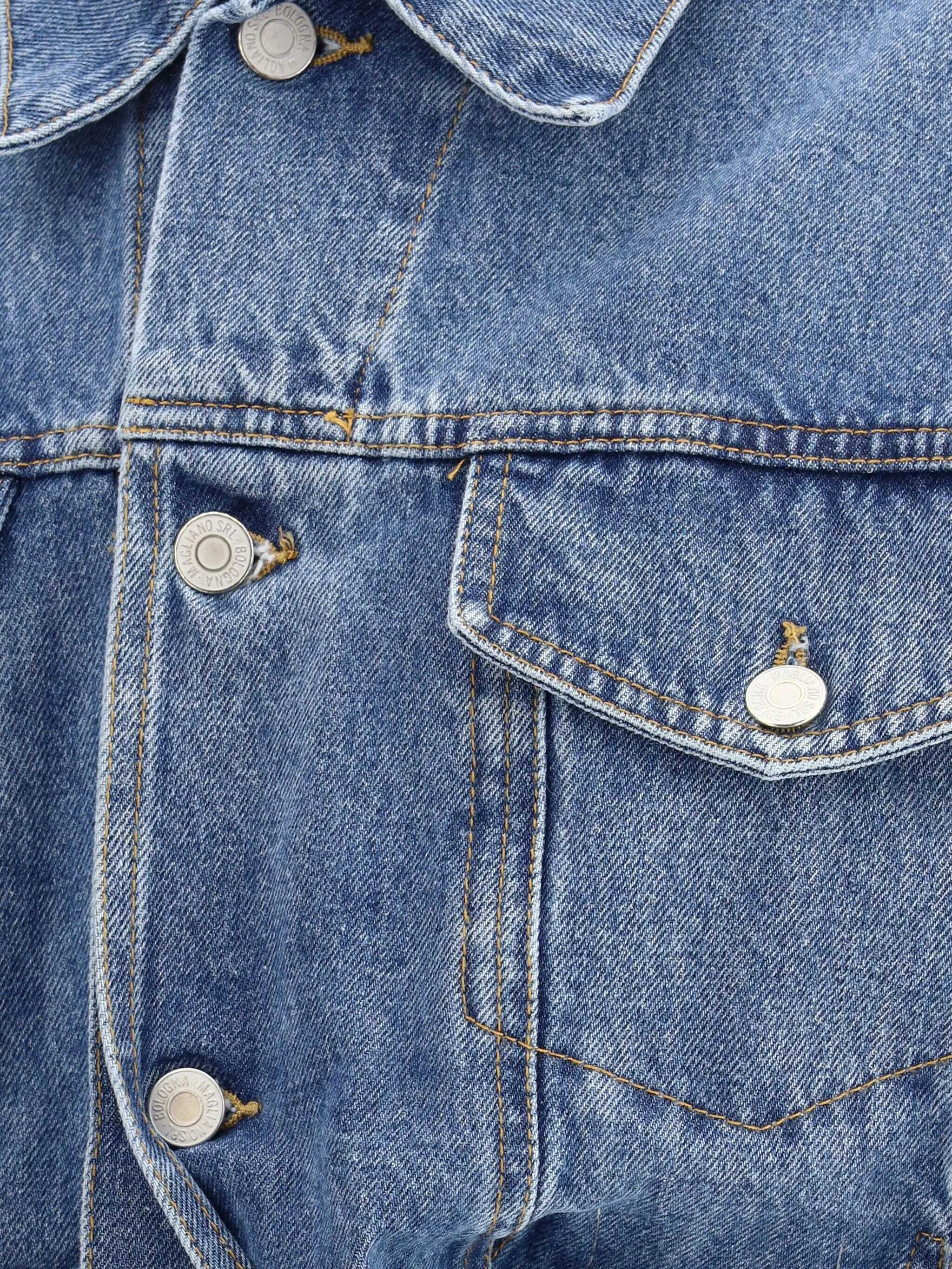 Magliano's Denim Level Jacket is a bold and sophisticated garment that combines the classic with unique details. The classic collar and front button closure offer a traditional design, while the two front patch pockets with flaps and buttons add functionality and style. Cut-out details and knots on the front lend an original and modern touch, making this jacket a distinctive and trendy piece.