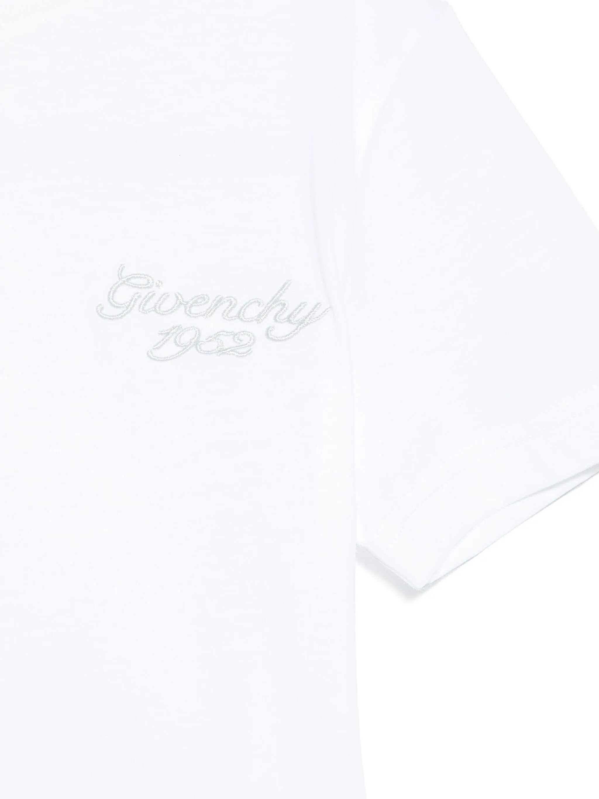 Organic cotton jersey tee-shirt, Givenchy 1952 signature embroidery on front chest, 4G embroidery on bottom back.