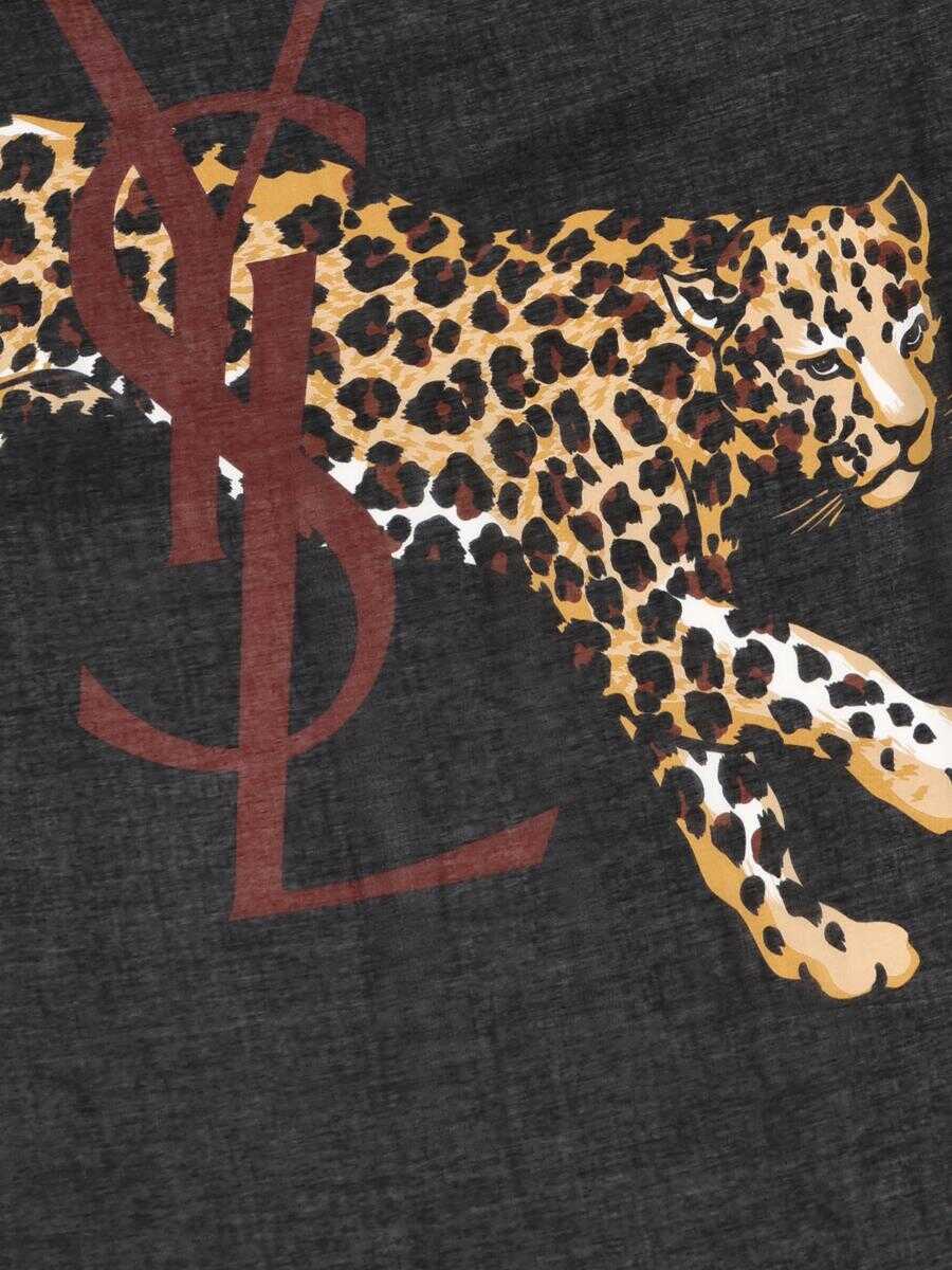 - Material: 90% modal, 10% cashmere - Color: black - Other details: Ysl logo and leopard print applied on front - Made in Italy - Item code: 7471583Y6681088