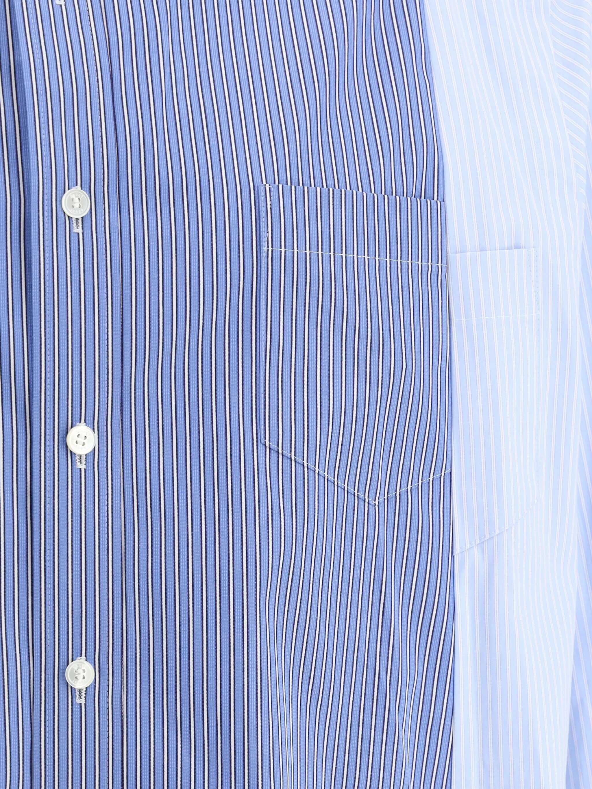 Sacai's cotton Shirt is a sleek, contemporary piece perfect for a sophisticated yet casual look. The classic collar and front button closure offer a traditional design, while the adjustable button cuffs allow for a customized fit. The patch welt pocket on the front adds a practical and stylish touch. The paneled design creates a dynamic effect, while the striped pattern lends a fresh, modern touch. This garment is ideal for those looking for a versatile shirt that combines elegance and comfort.