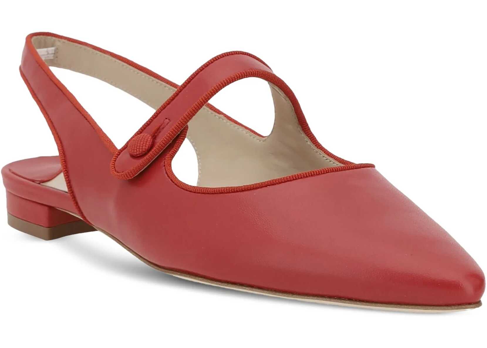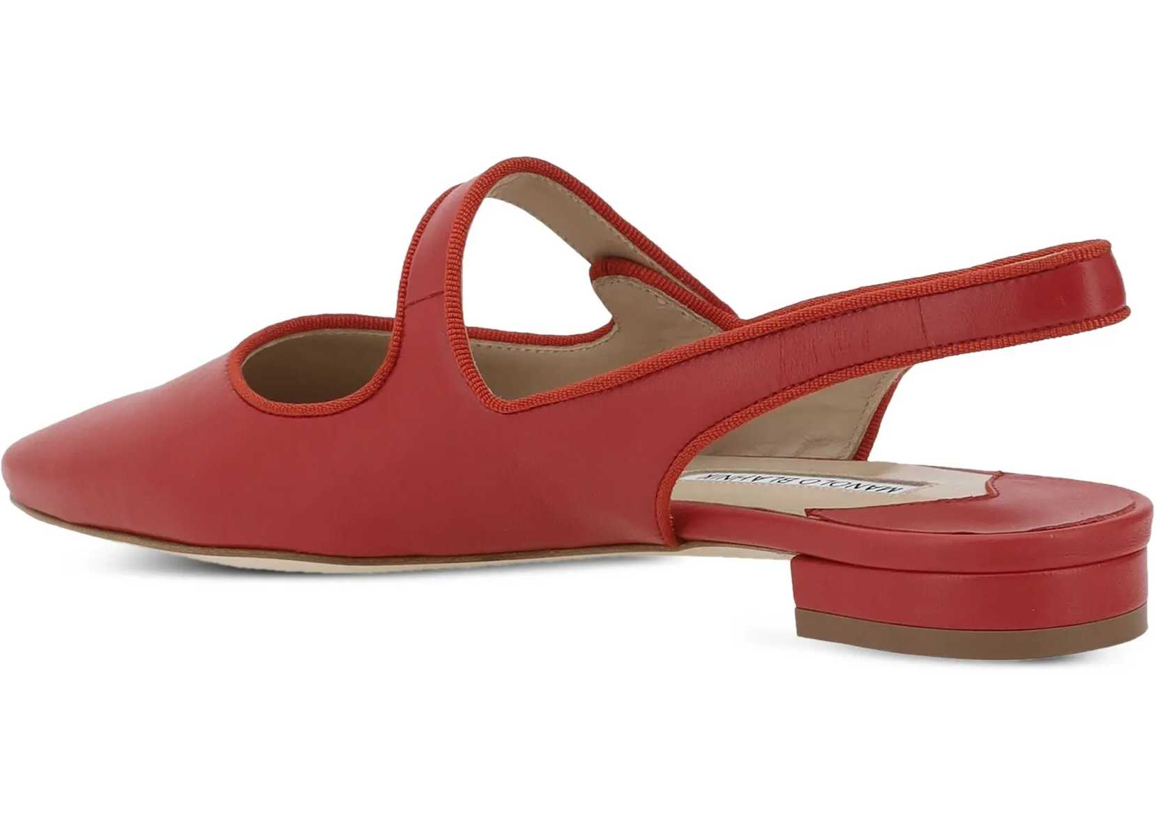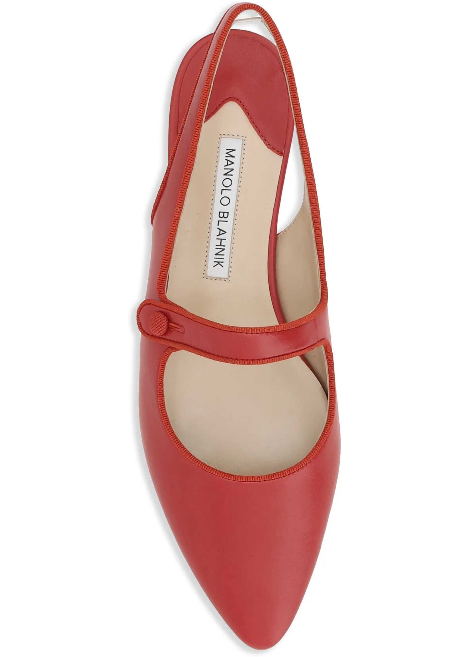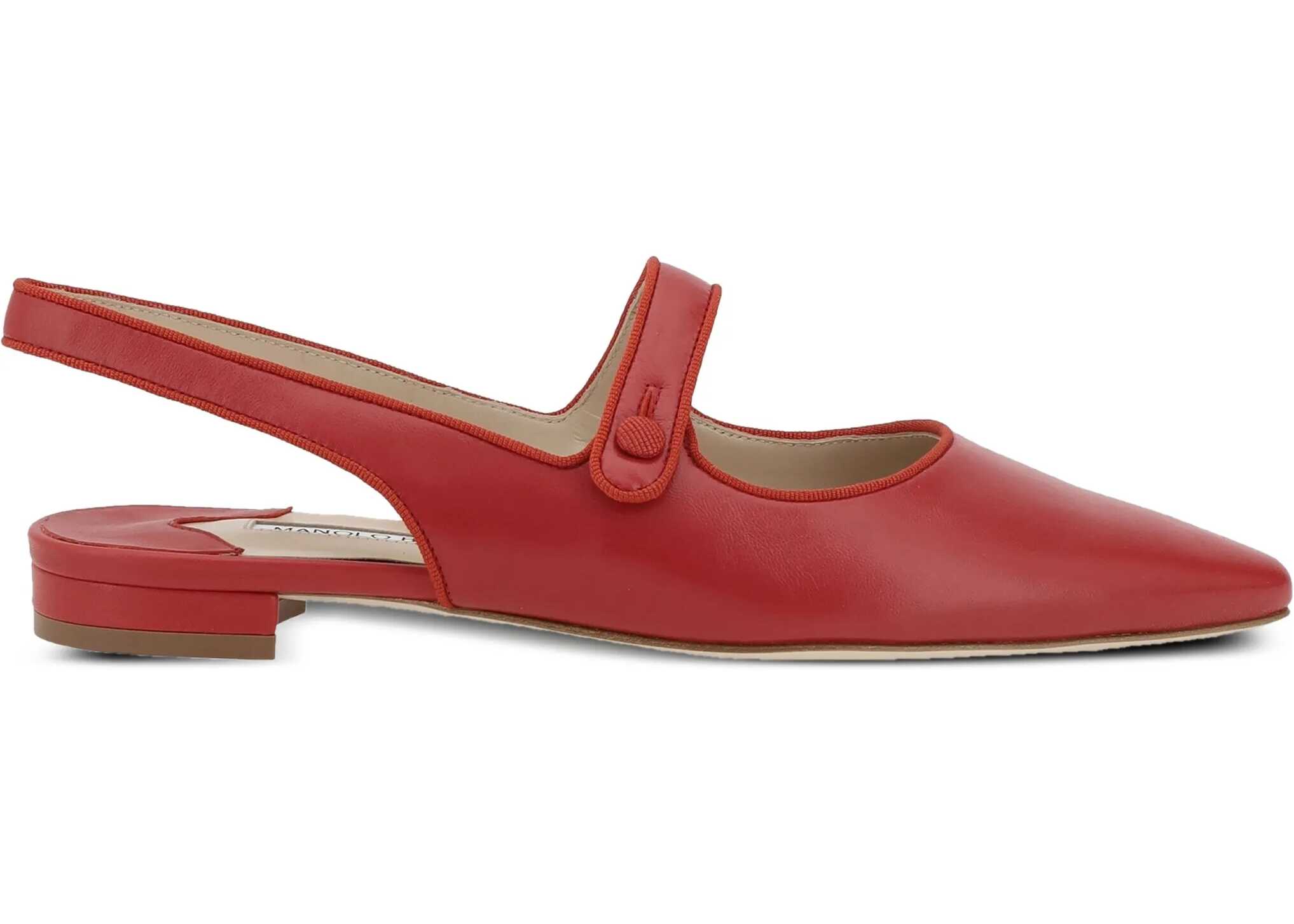 Manolo Blahnik's Campariflatsli leather Ballerinas feature an elongated toe that enhances the elegance of the design. The front button closure adds a refined detail, while the contrasting logoed insole completes the look with a distinctive and sophisticated touch.