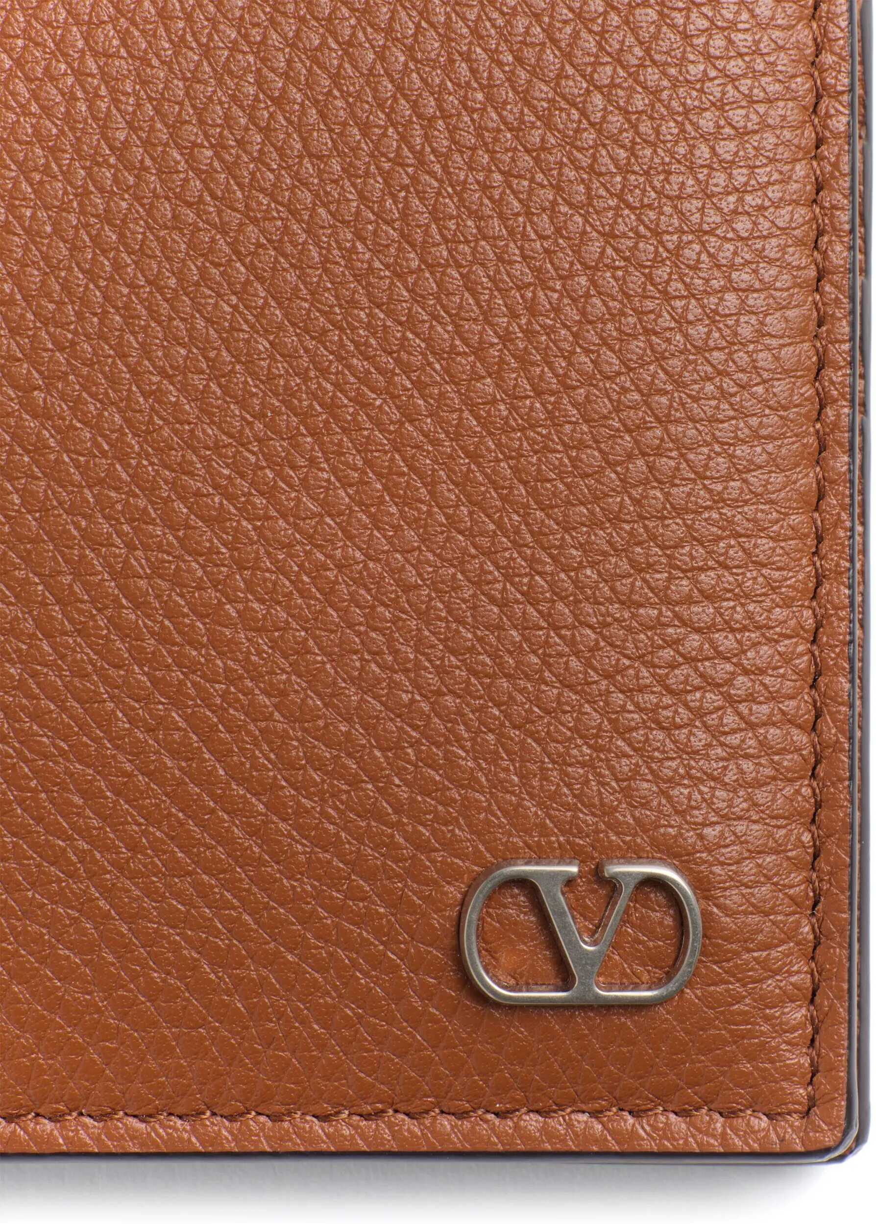 Leather Valentino Garavani Wallet, billfold model, three-dimensional iconic Vlogo brand plaque applied on front, bill compartment, card slot, iconic brand monogram printed in contrasting pressure on interior panel.