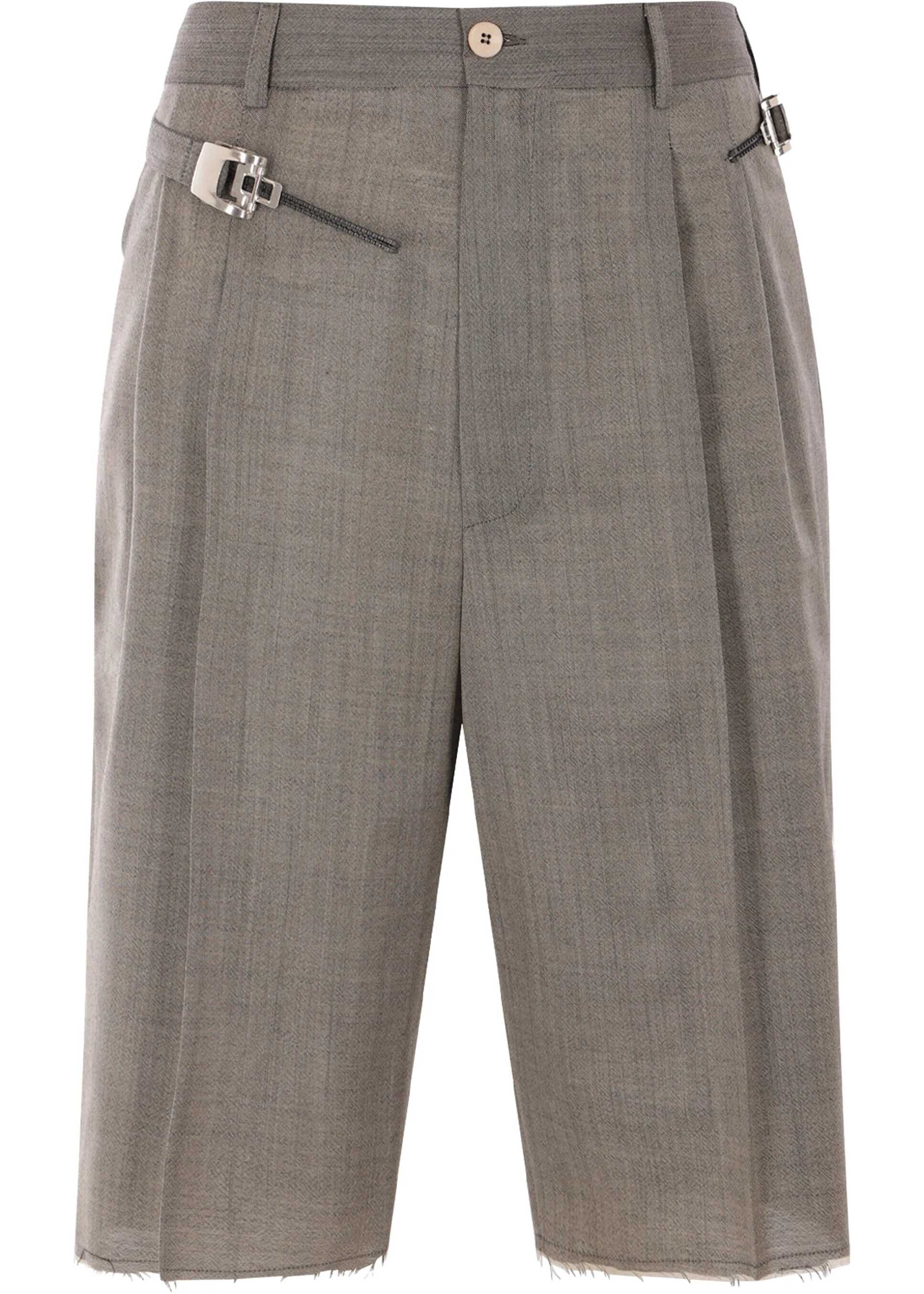 Magliano's Wool Shorts are an elegant and sophisticated garment featuring a front zipper and button closure. The waistband features belt loops, offering the ability to customize the fit. Two side welt pockets and two back welt pockets with a flap and pearl button add a touch of class and functionality. Side-applied buckle details and a raw-cut hem complete the design, giving it a modern and sophisticated look.