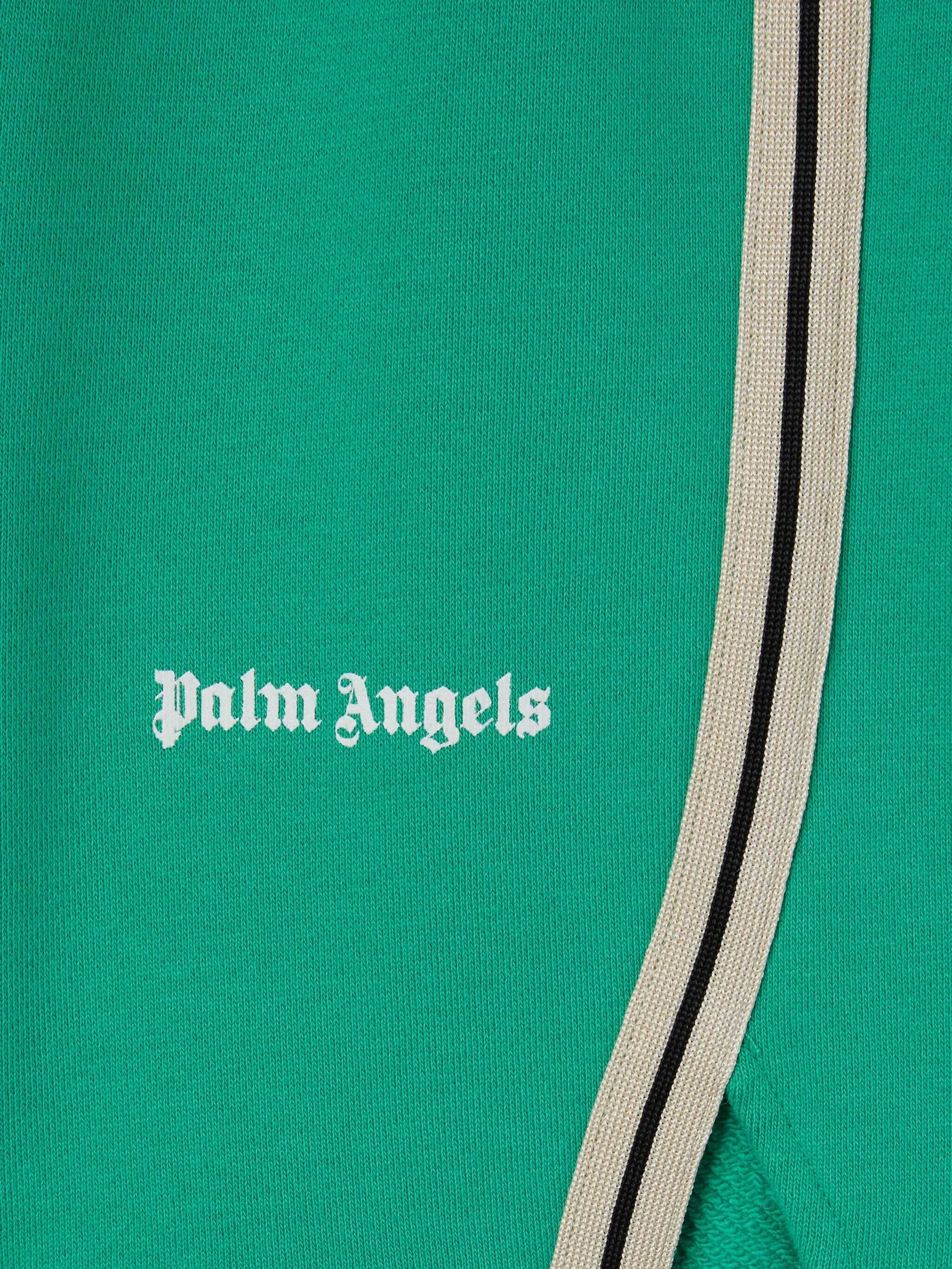 Green sweatshirt shorts with white details by Palm Angels. Made of 100% cotton for maximum comfort, with polyester details that enhance the sporty style.