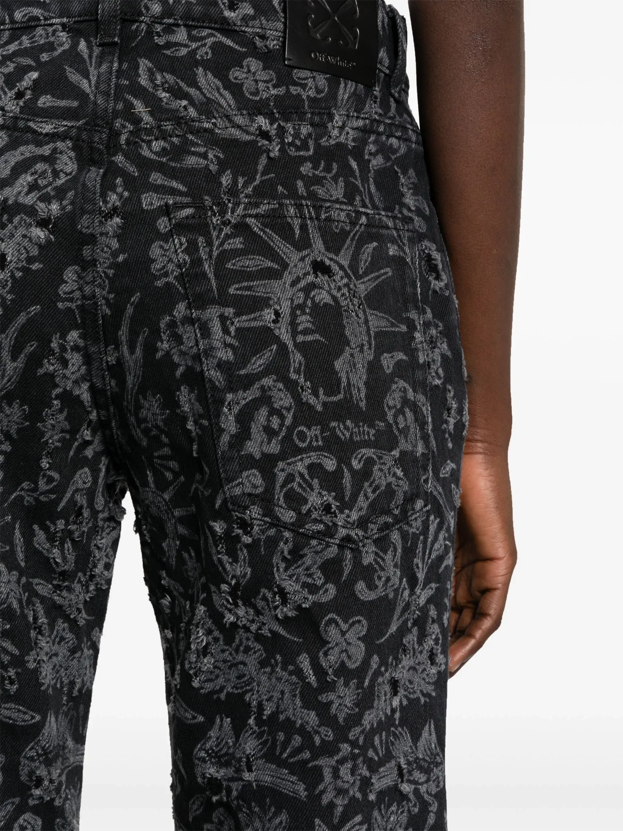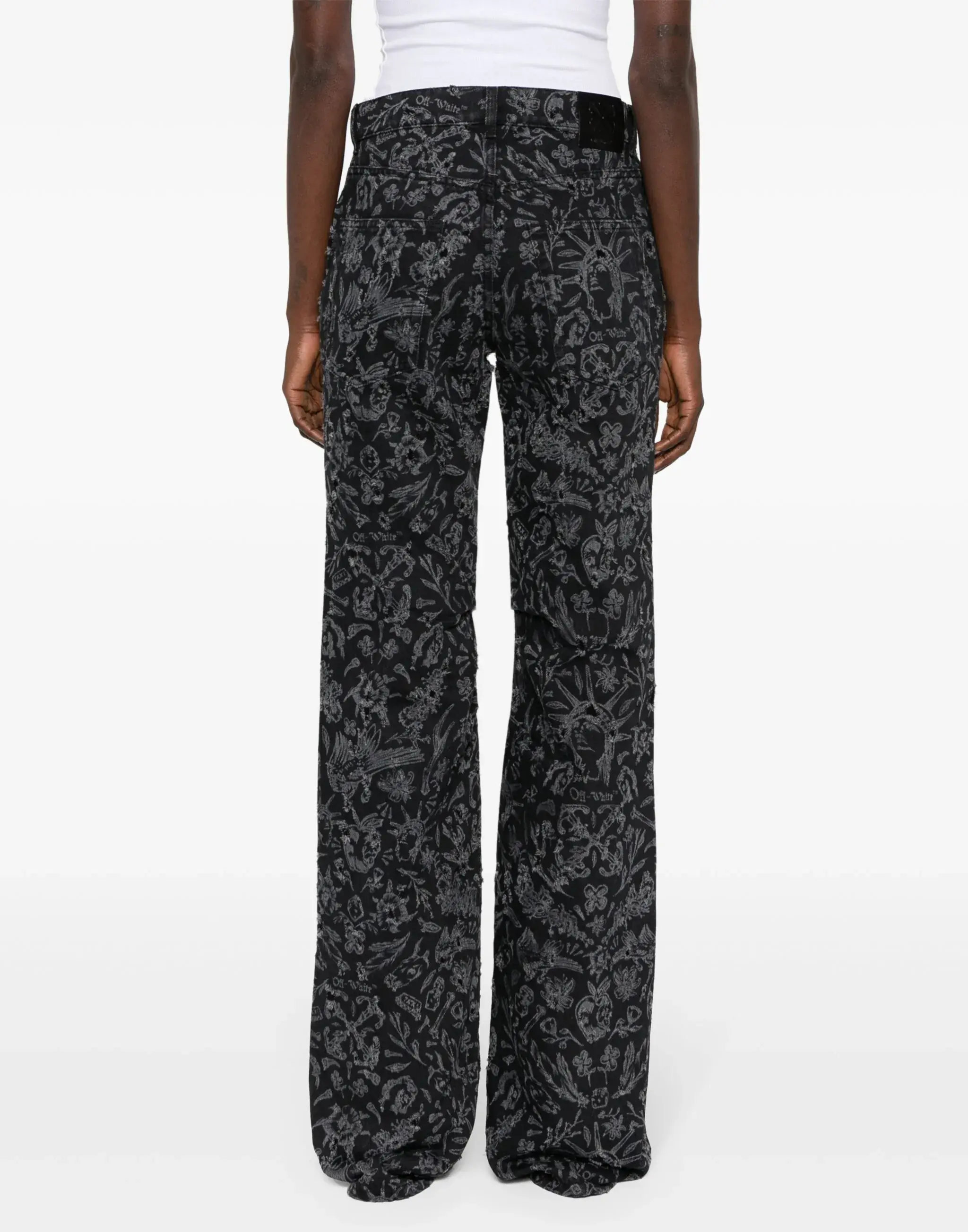 Flared Straight Leg Long Jeans With All-Over Graphic Print 2